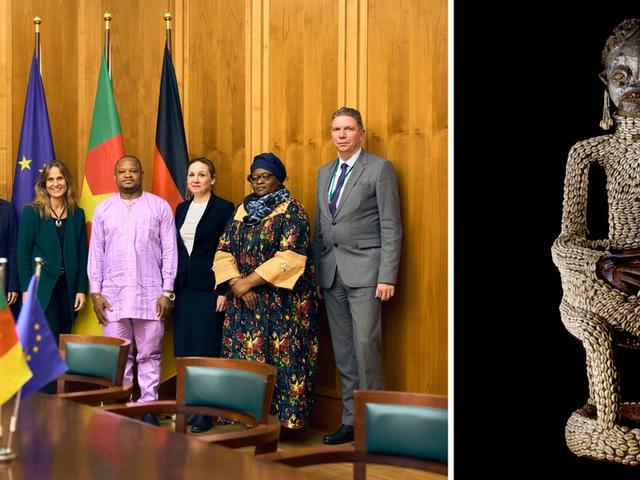 The ceramic vessel is on view in a new exhibition at Gagosian in New York, alongside another returned to Drake’s descendants last year by the MFA Boston