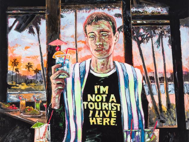 “The Visitors” includes more than 30 new paintings of youths who represent “cliches of the contemporary tourist”