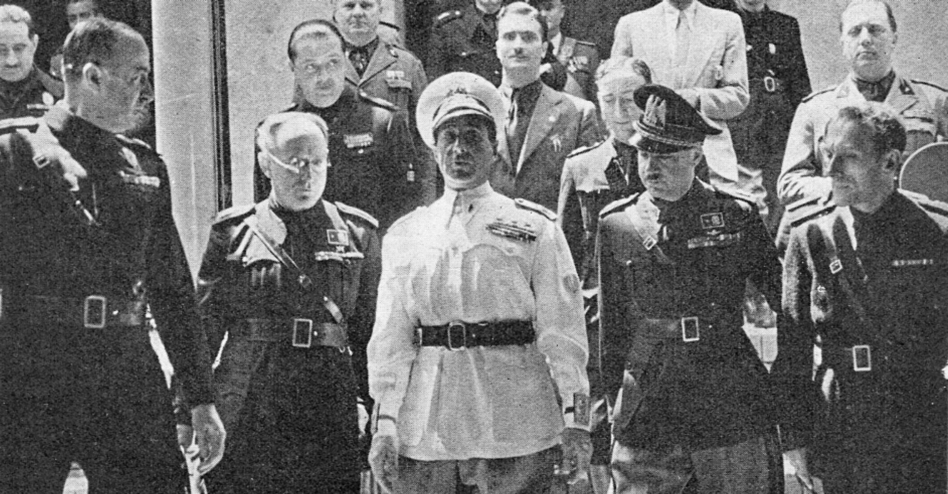 Fascist party officials at the exhibition opening, including secretary general Achille Starace, in white