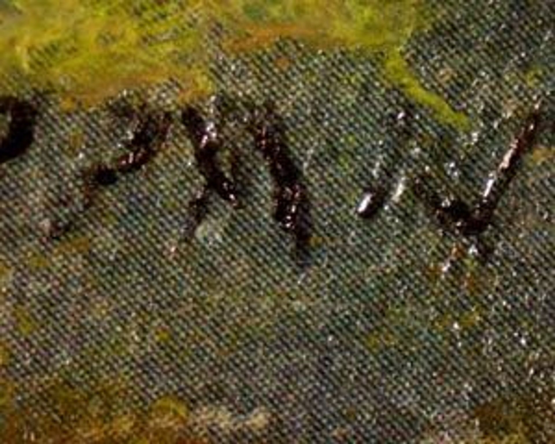 The director asked museum registrar Joyce Penn to examine the painting. “She said, ‘This doesn’t look right,’ so she went down to the art prep area and took out her blacklight.” The painting glowed suspiciously, so Penn used a microscope to take a closer look and discovered the tell-tale dot matrix pattern of a reproduction, which had been painted over and signed. Tullos admits that the forgery was good enough to fool him. “At first glance, you really could not tell. The hero of this story is our registrar,” he said.