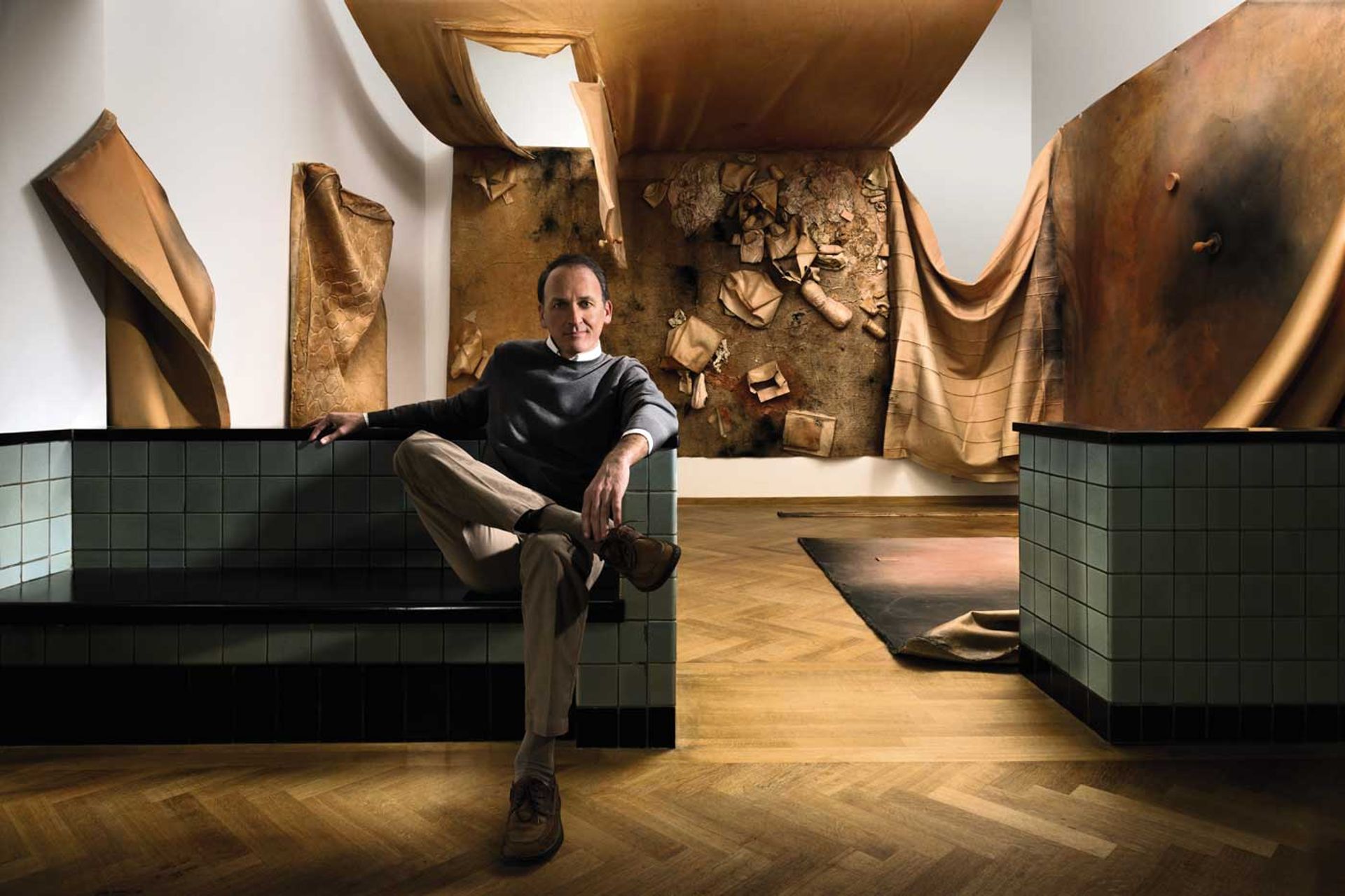 Bert Kreuk in front of an installation Recollection Hysteria by the artist Kaari Upson gifted to the Gemeentemuseum, The Hague. Photo: Courtesy of Gerrit Schreurs