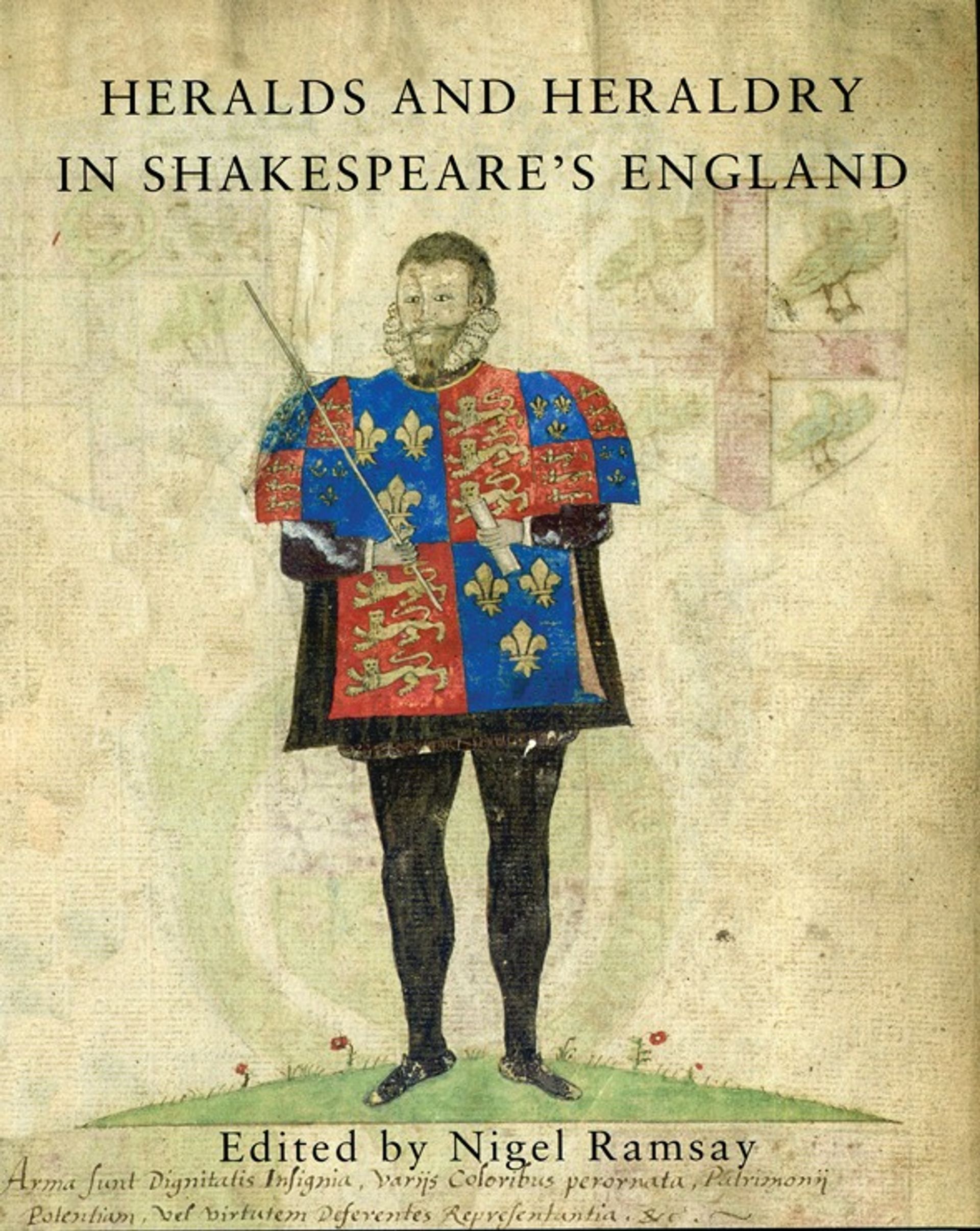 The four great libraries of English heraldry are, in order of importance, the College of Arms and the British Library, London, the Bodleian Library, Oxford, and the Folger Shakespeare Library in Washington, DC. Heralds and Heraldry in Shakespeare’s England has emerged from editor Nigel Ramsay’s research fellowship at the Folger in 2009 and the subsequent exhibition there of its rich collection of heraldic manuscripts in 2014. This led Ramsay to embark on a systematic, scholarly treatment of the English heraldic world in the Elizabethan and Jacobean period.