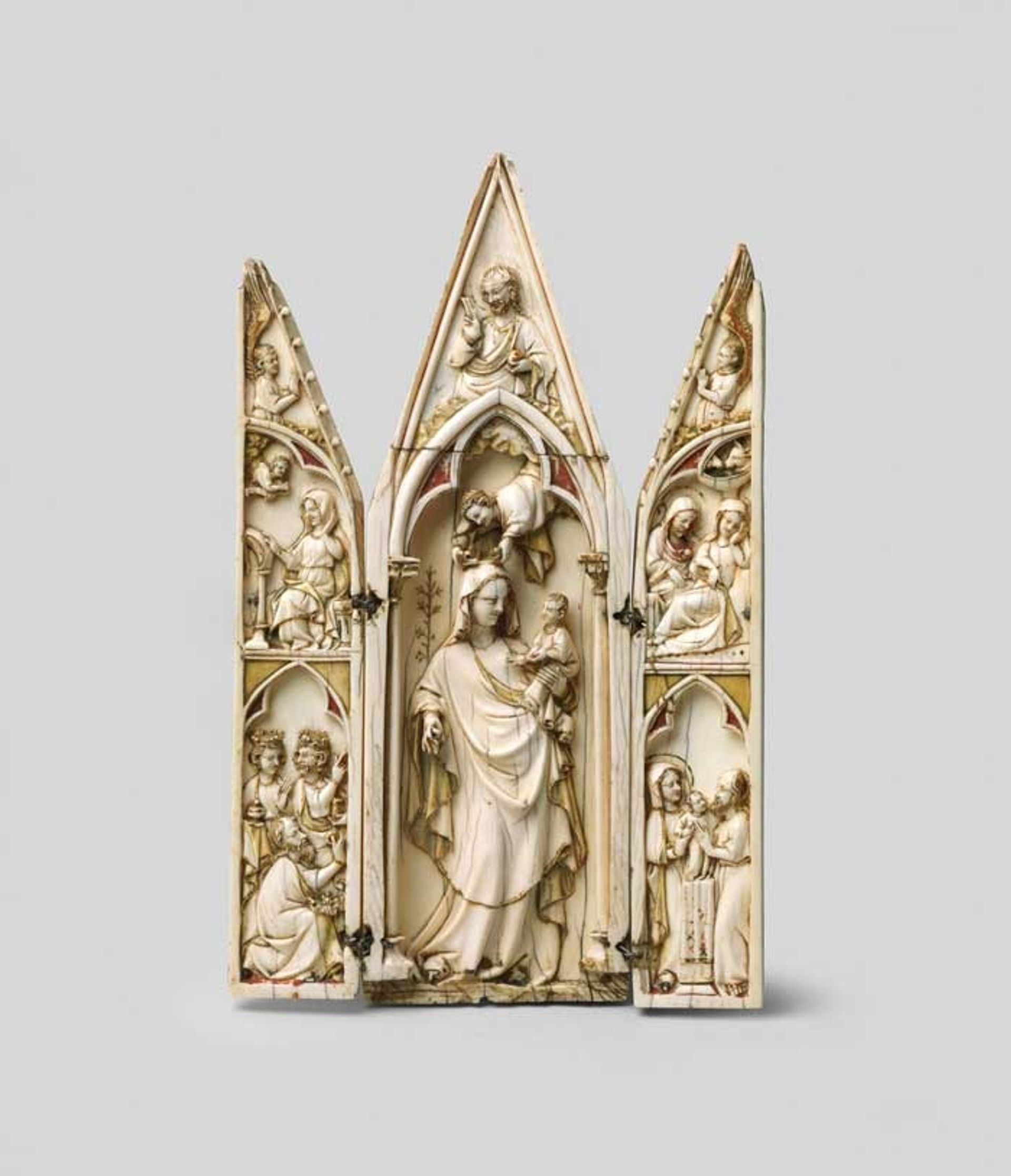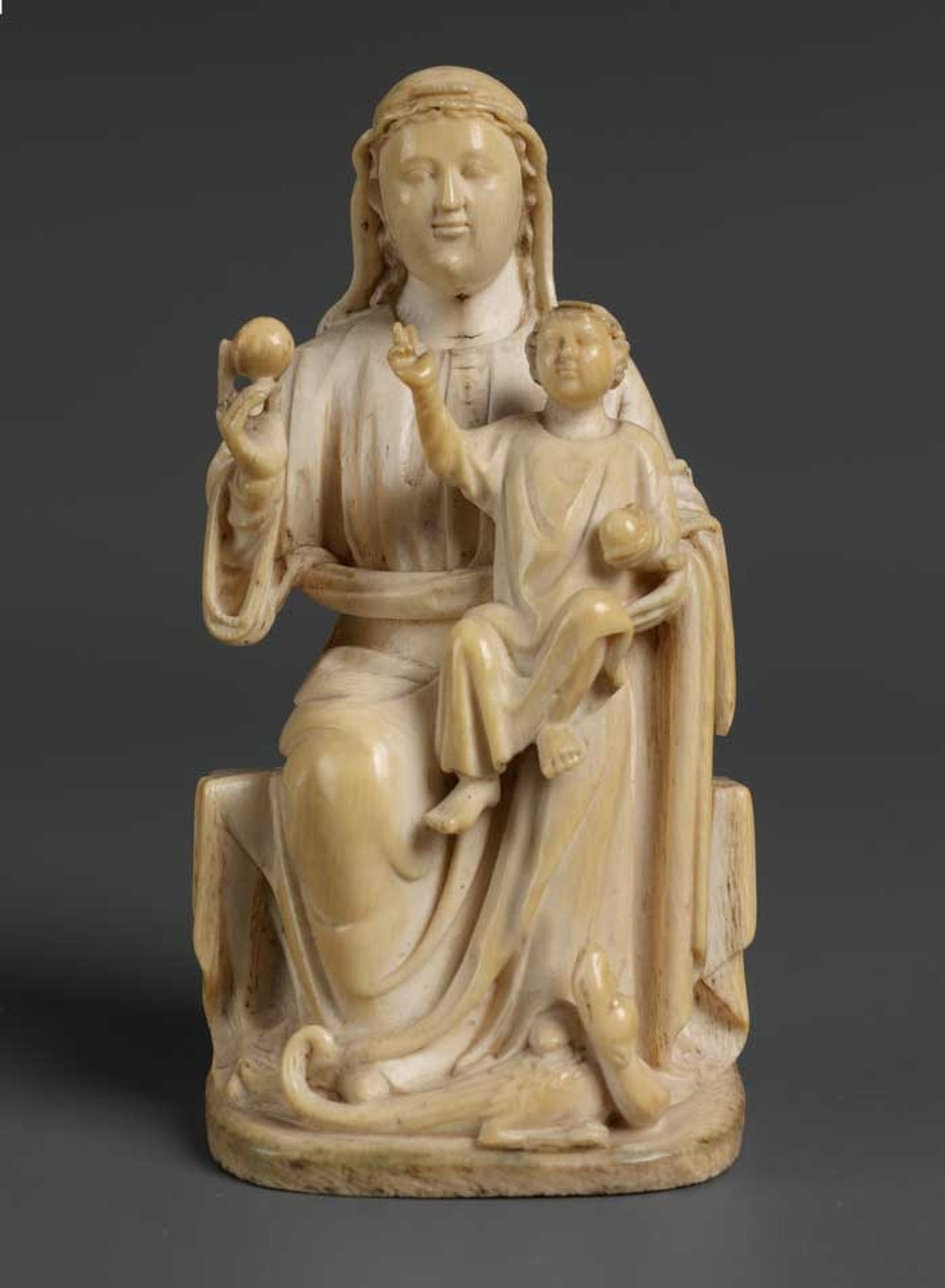 More than any other naturally occurring substance employed for the making of sculpture, ivory is a law unto itself. In the European tradition, the overwhelming majority of ivories have been carved from the tusks of African elephants, but the term is also commonly applied to walrus ivory (also known as morse), narwhal “horns”, bone and other related substances. In all, the physical characteristics of the raw material simultaneously inspire and constrain the design of the work, and with experience it is often possible to “see” the underlying form behind the finished object, perhaps especially when looking at the productions of the Gothic and Baroque periods. For some reason, but by no means necessarily this one, both were Golden Ages in the history of ivory production, whereas the Renaissance—in this context, and almost no other, a low between two highs—was absolutely not.