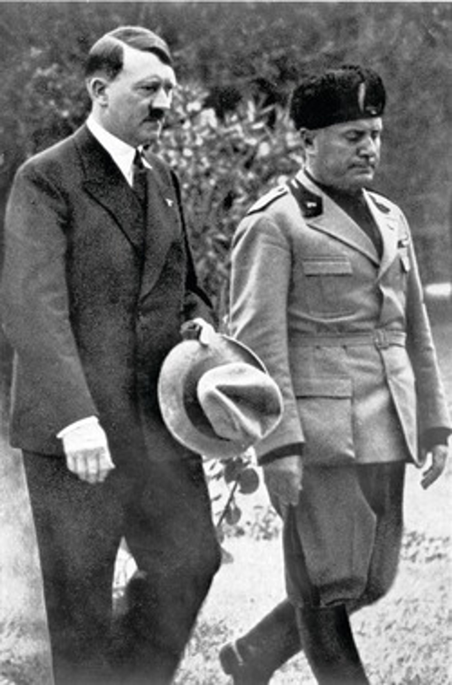 • On his first trip abroad after coming to power in 1933, Hitler travels to Venice to meet Benito Mussolini (left) and to visit the Biennale’s German pavilion. He demands a redesign, including replacing the parquet floor with marble slabs.