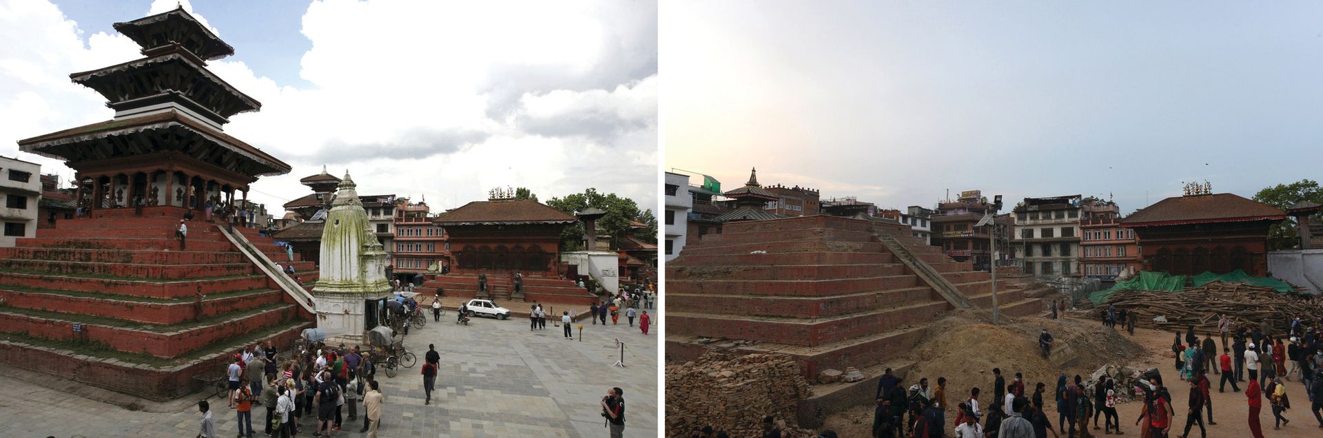 “It might seem inappropriate to worry about the destruction of historic monuments when thousands of people have died, but in the case of Nepal, this is an incredibly significant part of their loss,” Whitmarsh says. “These palace and temple complexes form the heart and soul of the country’s identity. They’re lived-in and loved spaces, and it’s shocking to see them flattened.