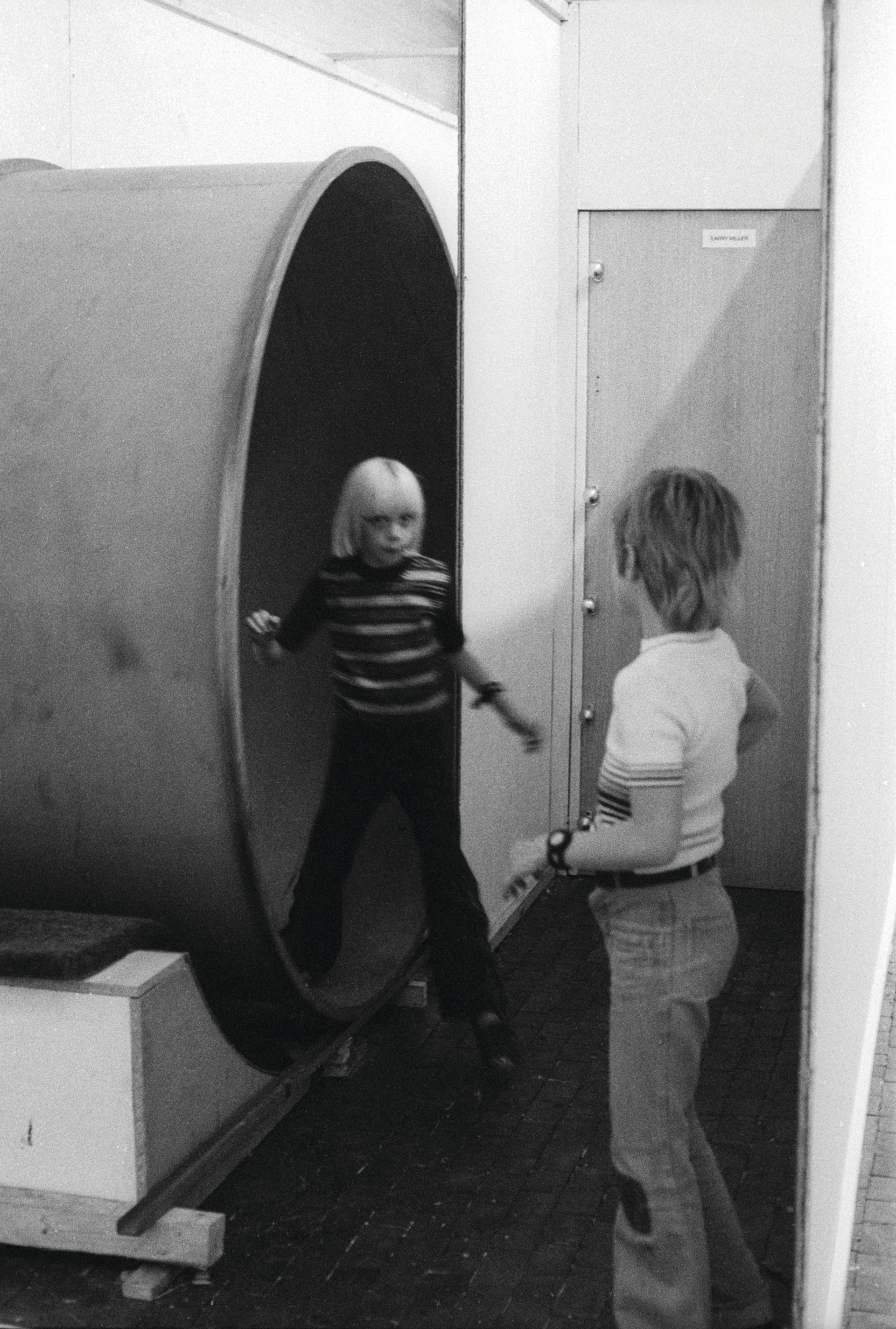 Artistic pranks The labyrinth’s entry portal had two knobs. It opened only when visitors turned both at once, triggering a large rubber ball to swing towards their heads and back like a cartoon boxing glove on a spring. That was Miller’s idea, as was a room with big balloons that predated Martin Creed’s balloon rooms by two decades. Knowles wanted doorknobs greased in face cream. That didn’t happen; nor did Maciunas’s sticky floor and a see-saw. “There was collaboration in the sense that we were realising the work of others,” Miller says, “but we had to modify it according to budget, space and availability.”