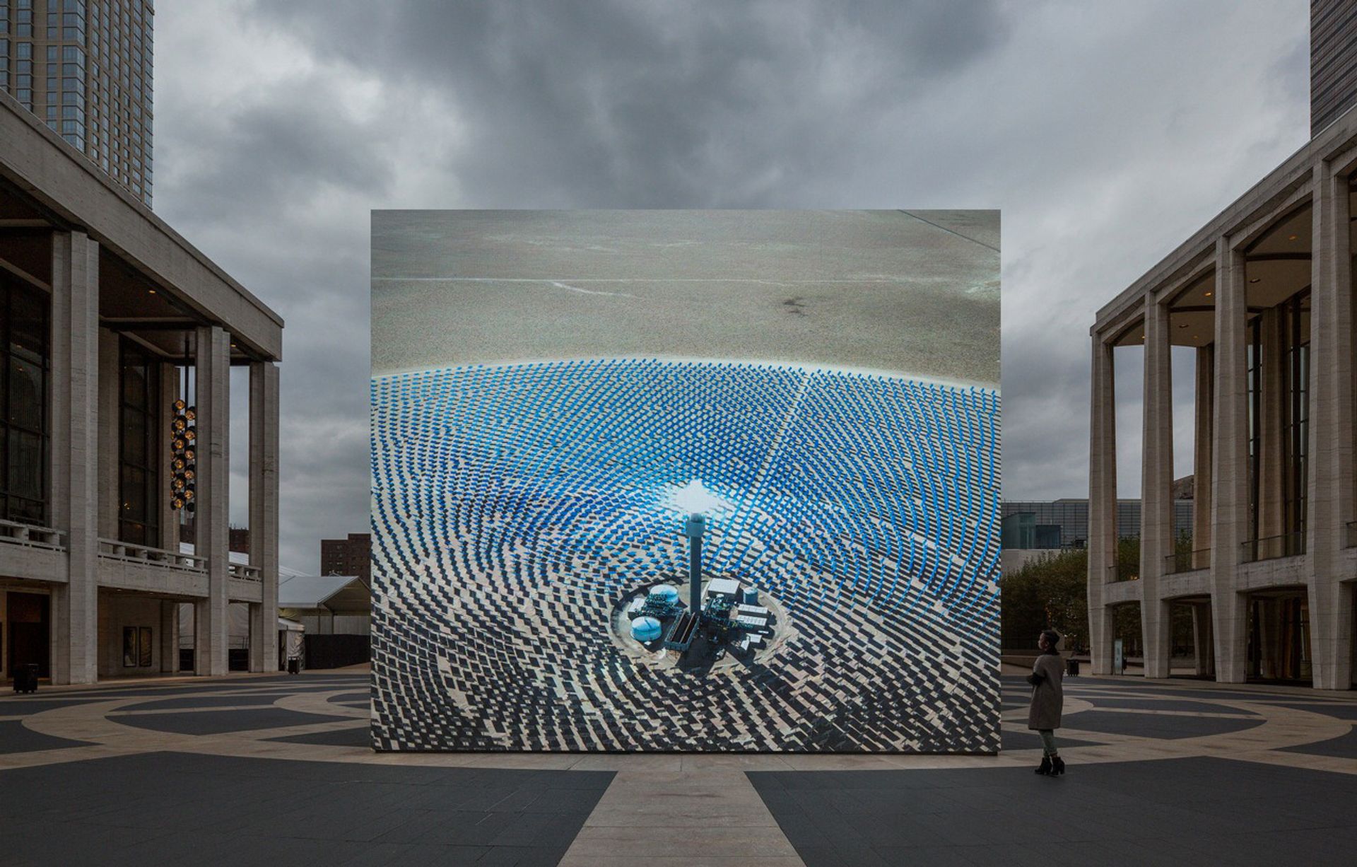 The work, Solar Reserve (Tonopah, Nevada) (2014), was installed outside Lincoln Centre in New York last year, and will be shown at Art Basel next week in its Unlimited section. It is a simulated landscape showing computer-generated images of the tower at a solar thermal power plant in Nevada. Every hour, the view of the tower shifts from overhead to ground level, mimicking the movement of 10,000 mirrors that surround the tower and track the orbits of the sun and the moon.