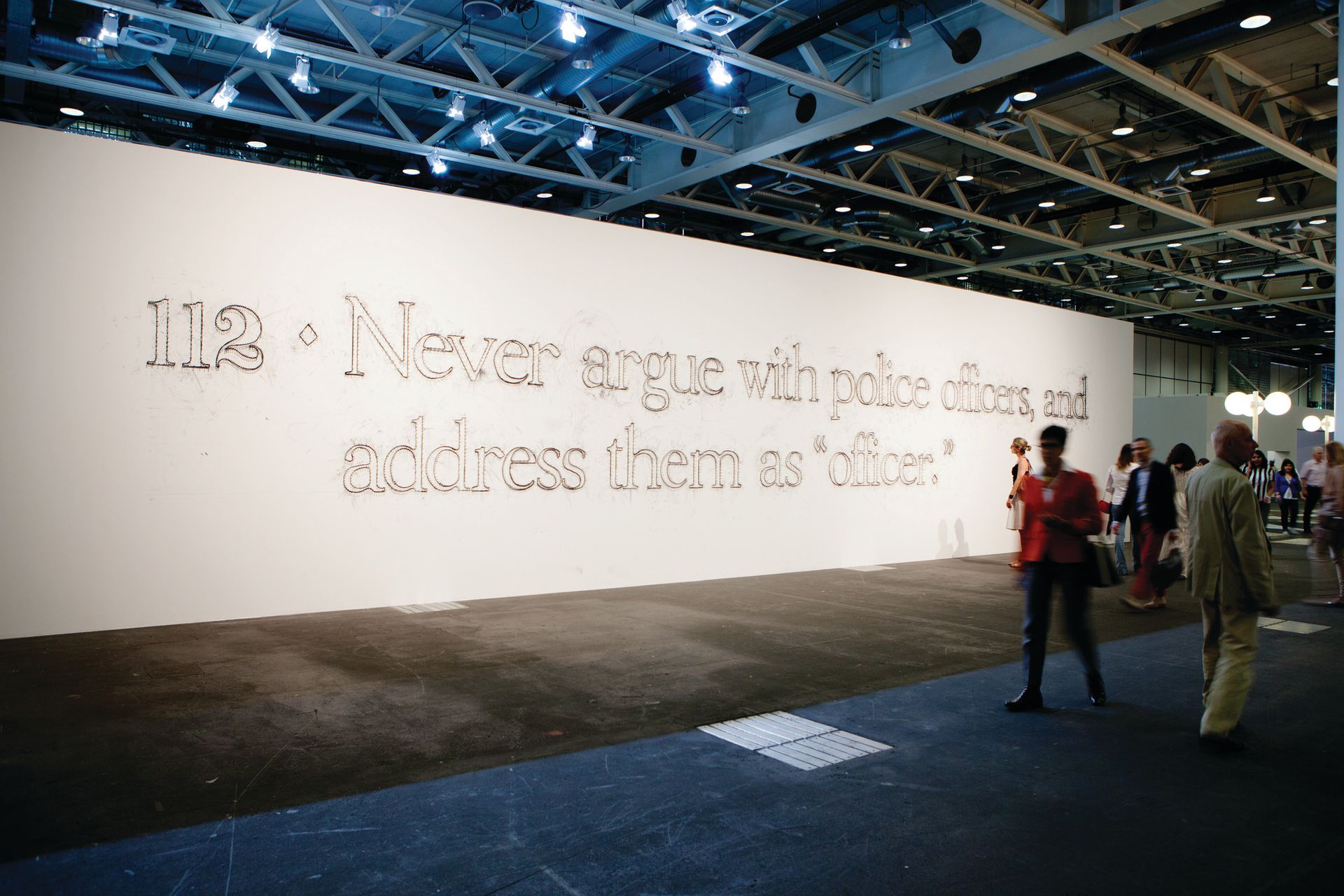 Although there was “already a waiting list” for Pendleton’s works when the artist joined Pace Gallery in 2012, says its president Marc Glimcher, his participation in the Belgian pavilion has hugely increased the demand for his output. Before the fair opened, Pace sold Mississippi #2 (2015), which uses an image by the American Civil Rights photographer Charles Moore, to a British private collector for an undisclosed price. Pendleton says he used the 1960s picture in his work to “link the past to the present within our current political climate”. Another work, Black Lives Matter #1 (2015), sold to a European collector during the VIP opening. Pendleton describes the phrase emblazoned across the piece as a “public warning, a rallying cry and a poetic plea”.