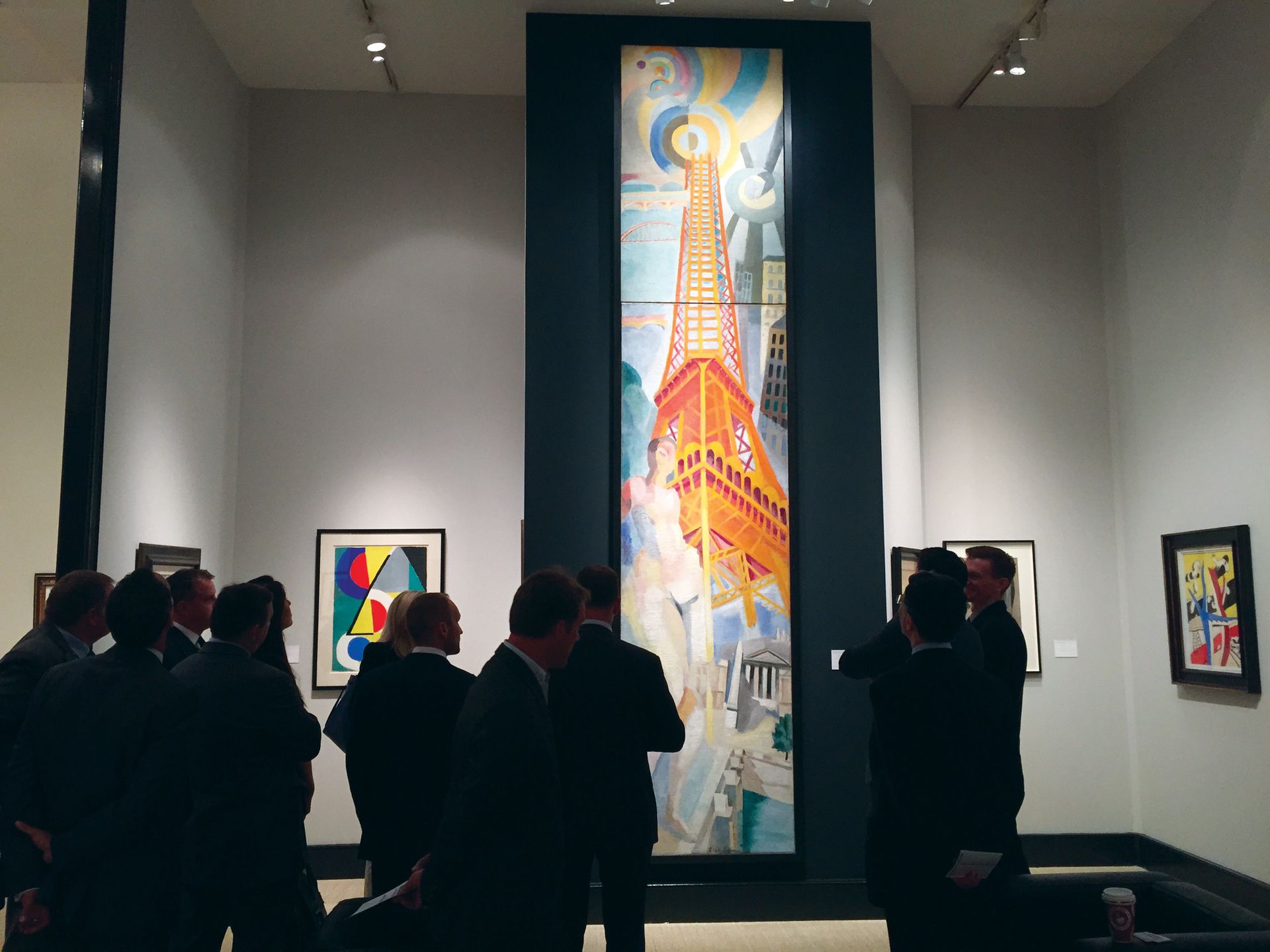 Visitors can’t miss this oil on canvas at the centre of Dickinson’s booth, where—at around 4.5 meters—it towers above the rest of the works. Delaunay painted it for the 1925 Exposition International des Arts Decoratifs in Paris, where the term “Art Deco” became popular, earning this work the honour of arguably being one of the first Art Deco paintings ever.