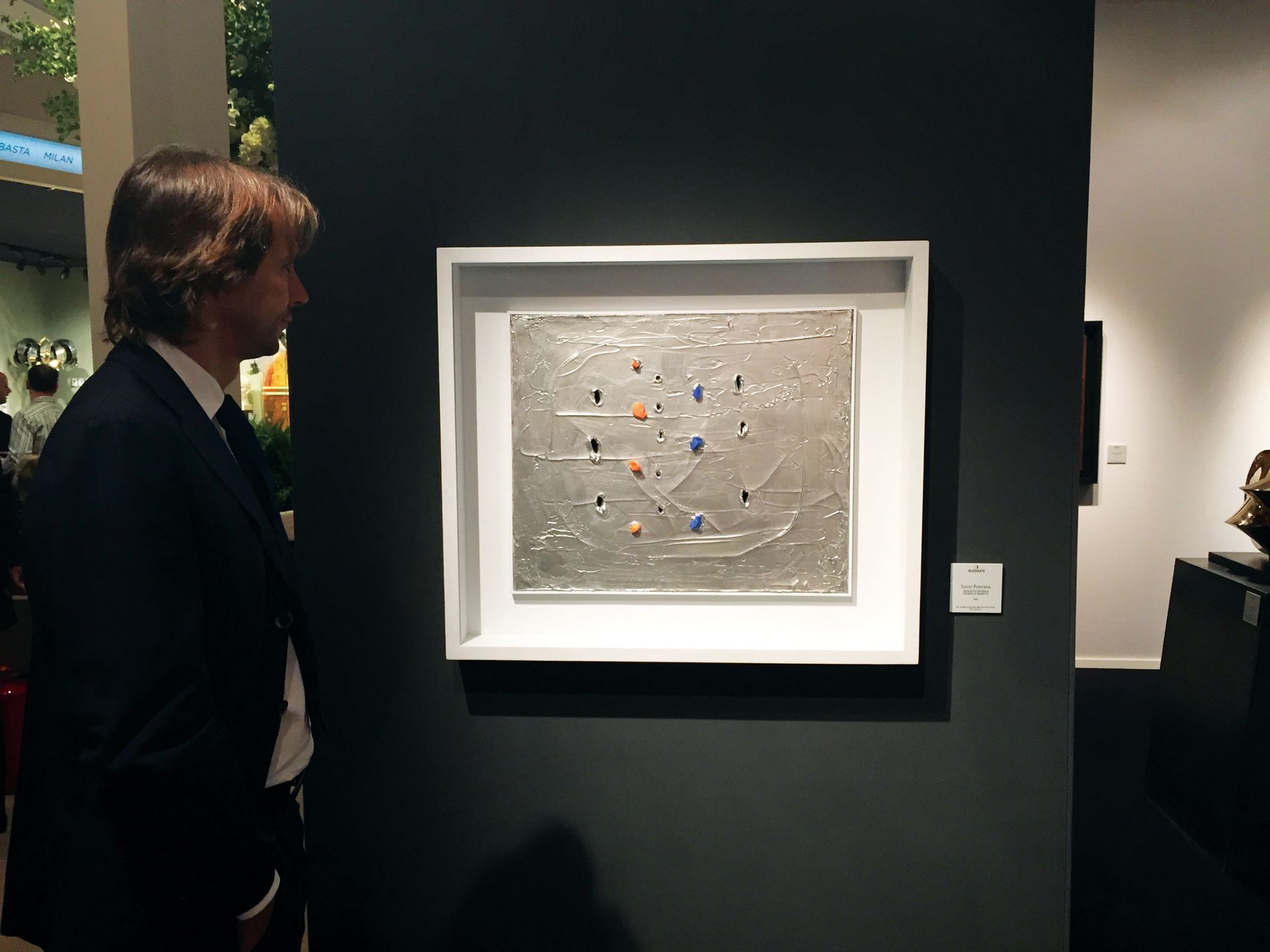 “The fair is of enormous quality and we’ve seen some dedicated collectors here,” says Luigi Mazzoleni, scion of the Turinese dealers and head of their newly opened London branch. This work by Fontana is part of a series of 22, made between 1961 and 1962, which showed critics and admirers that his work was not just about the cuts that he is now so famous for.