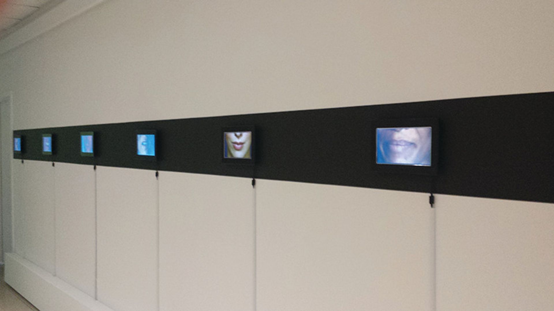 Cat Del Buono’s Voices (2013), given its own separate space in a hallway, perhaps speaks loudest all on its own. From a distance, the 13-screen sound and video installation of the lower half of women’s faces speaking is a pretty picture of moving mouths and a hum of indistinguishable chatter. But up close, each screen features a different woman speaking about her own harrowing experience with domestic violence. The work has a simultaneous anonymity and extreme intimacy, and the brief blackness of a screen when its monologue ends adds to the haunting sentiment. Napier recalls her initial hesitation to include the work, and admits it was difficult to handle—she eventually had to turn off the videos during installation—but is happy to have included the piece. “It’s a really important conversation to have,” she says.