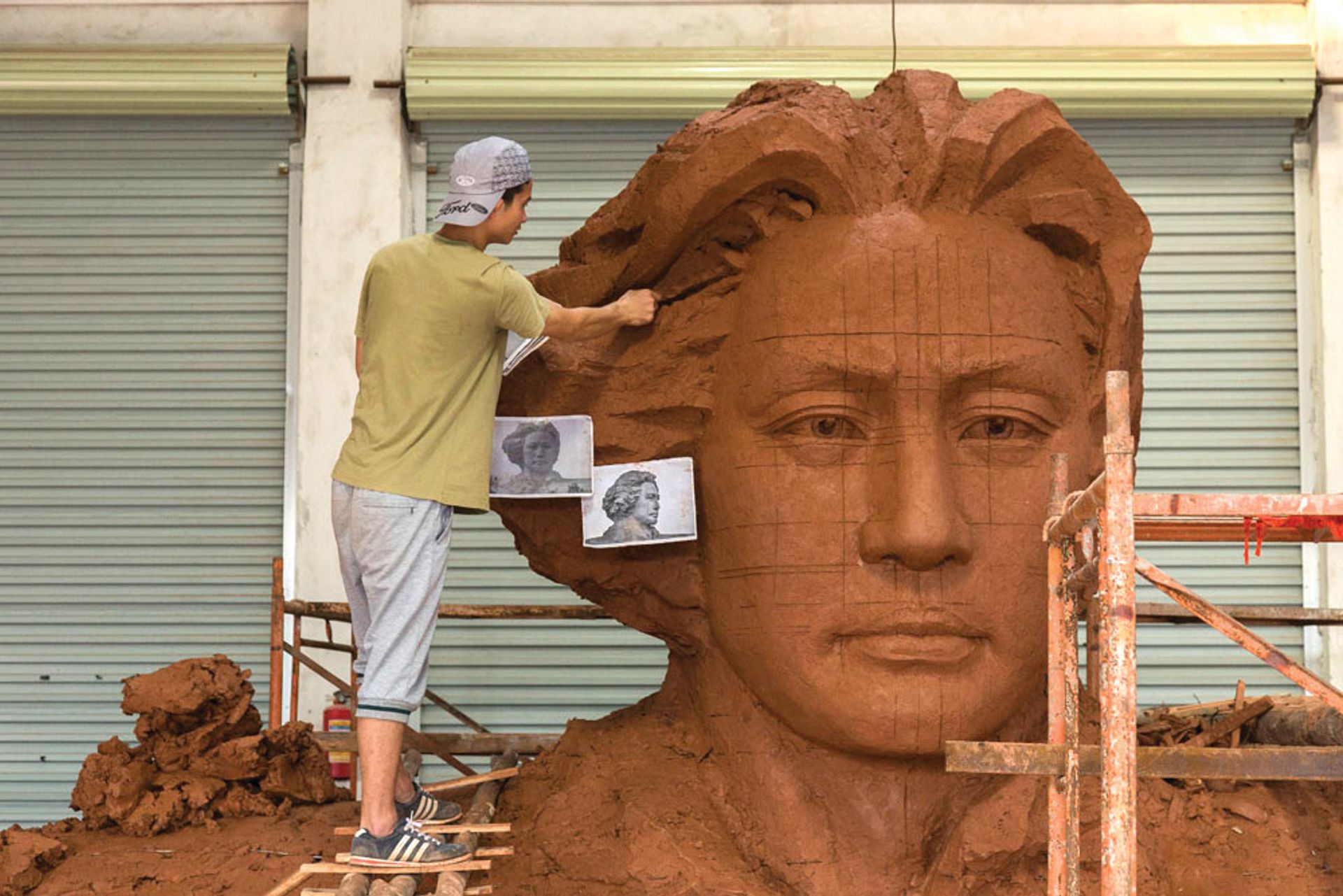The works then entered the production phase. In the case of Song Ta, a replica of the chairman Mao sculpture was produced in clay and a mould was made. The final sculpture was then cast in fibreglass.