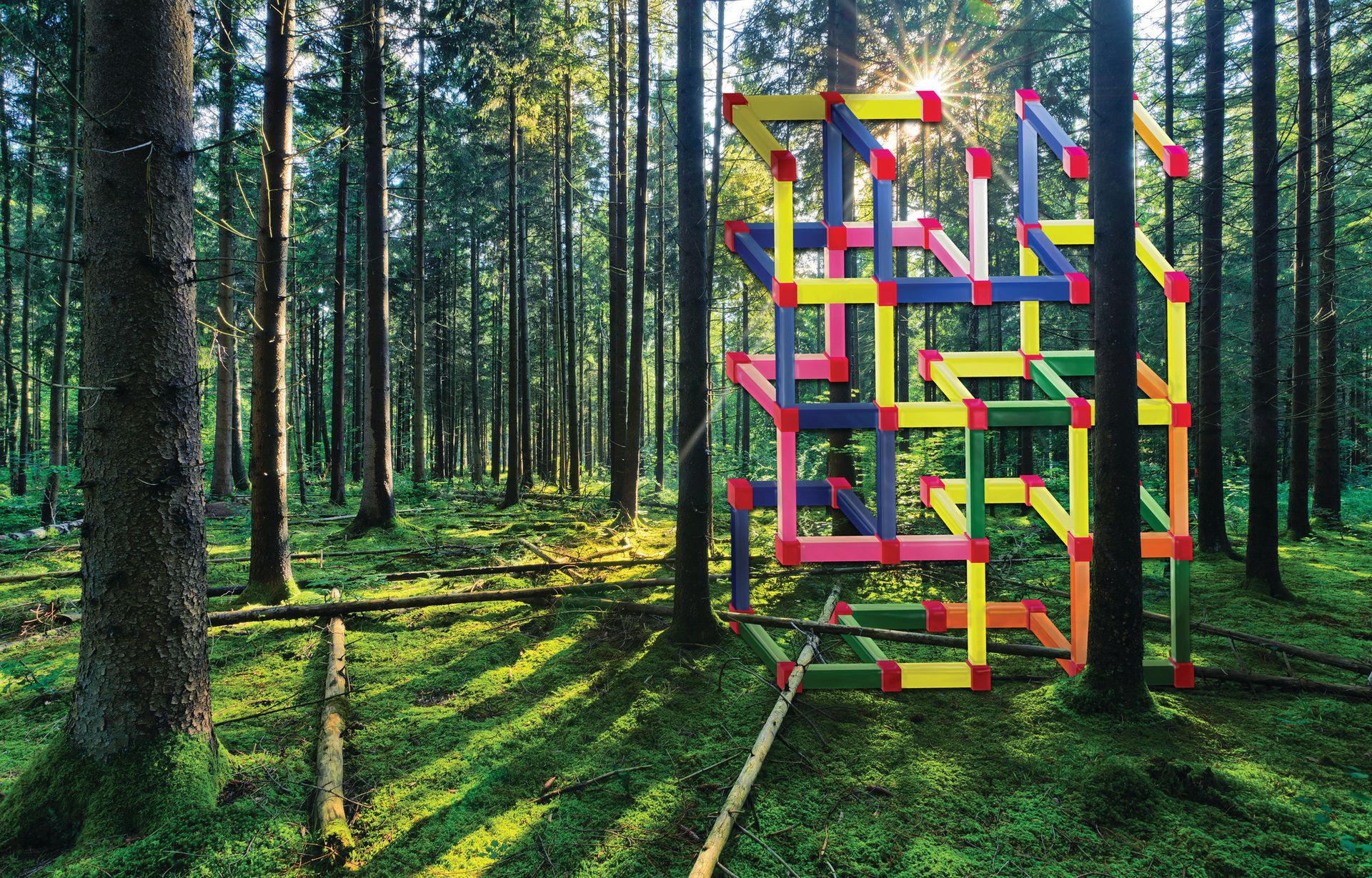 Some of the artists, such as Cheng Ran, drew direct inspiration from this site visit. Normally working in film, he was inspired during his visit on a dark and gloomy day in February. Walking through the grounds, he caught a glimpse of the sun shining through a clearing in the most spectacular way, recalling a scene from a film that he could not recall, or may not even exist. Cheng Ran decided to install his own beam of light to produce a purpose-built set. Early next year he will create a film, entitled Crossroads, in the grounds. The scenes of this film will feature actors crying, sleeping or appearing lost in the crossroads. These scenes will take place under this beam of eternal sunshine, regardless of the surrounding weather.