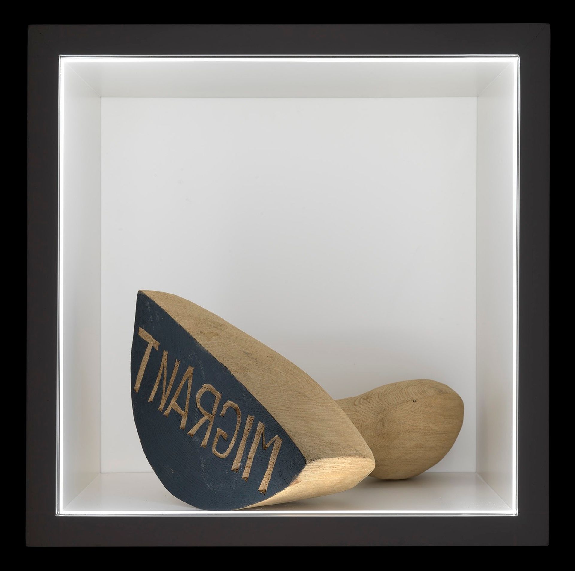 Blink and you’ll miss Barthélémy Toguo’s new installation at Pippy Houldsworth Gallery (until 3 October). The Cameroonian artist is presenting Migrant (2014) in what must be London’s smallest exhibition space, a floating 40cm white cube. The wooden block relates to Toguo’s project for the 2015 Venice Biennale, Urban Requiem, which features 105 abstract human busts carved with political slogans and coated with ink, like giant passport stamps. Here, in the place of phrases such as “Je suis Charlie” and “Ferguson is everywhere” is “Migrant”, a reference both to Toguo’s personal experience of border control and the dehumanising language that surrounds an increasingly universal phenomenon.