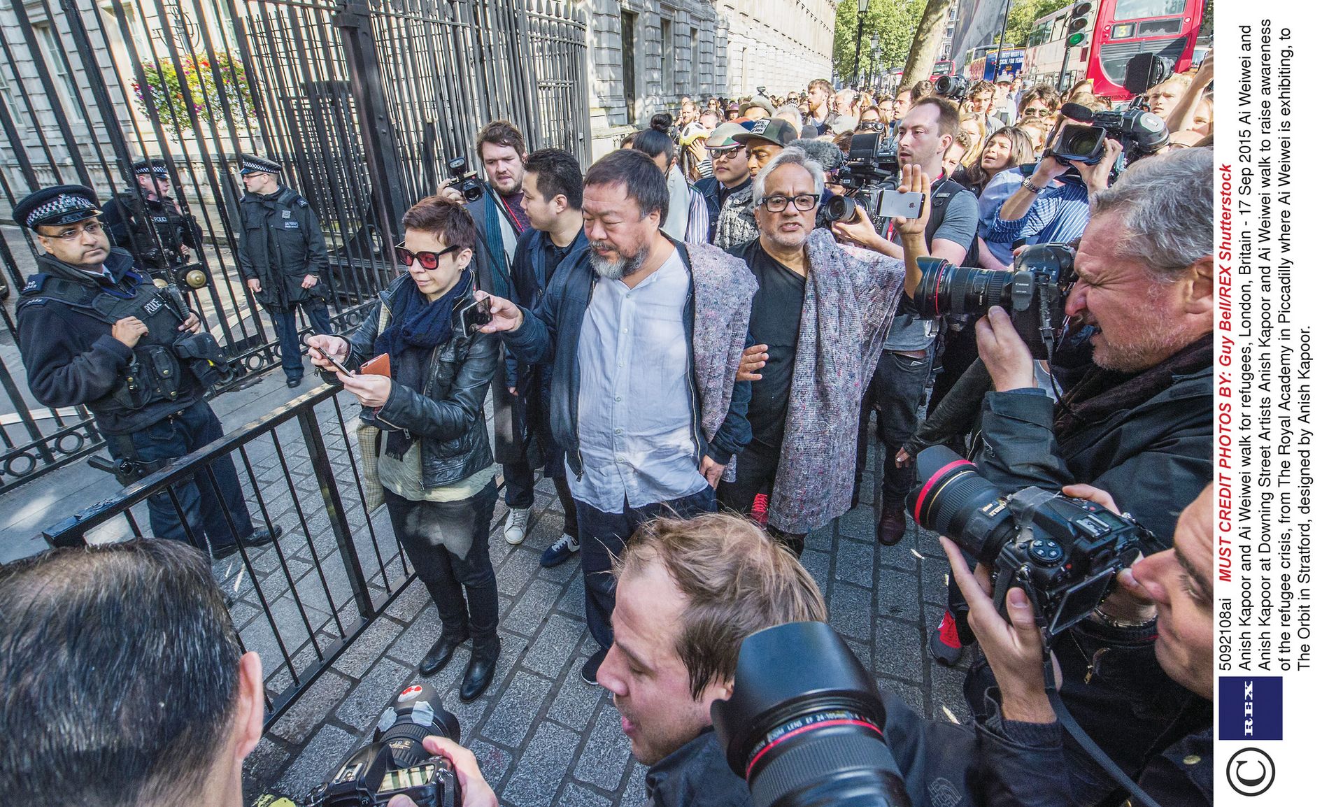 Two artists have made a high-profile stand against politicians’ lack of compassion and imagination in offering a safe haven for refugees. The Chinese artist Ai Weiwei and the British artist Anish Kapoor met for the first time in London in September and immediately agreed to walk across the city in solidarity with refugees trudging across Europe. They were accompanied by around 300 supporters, including members of their respective studios, and plan to repeat the symbolic action in 100 cities.
