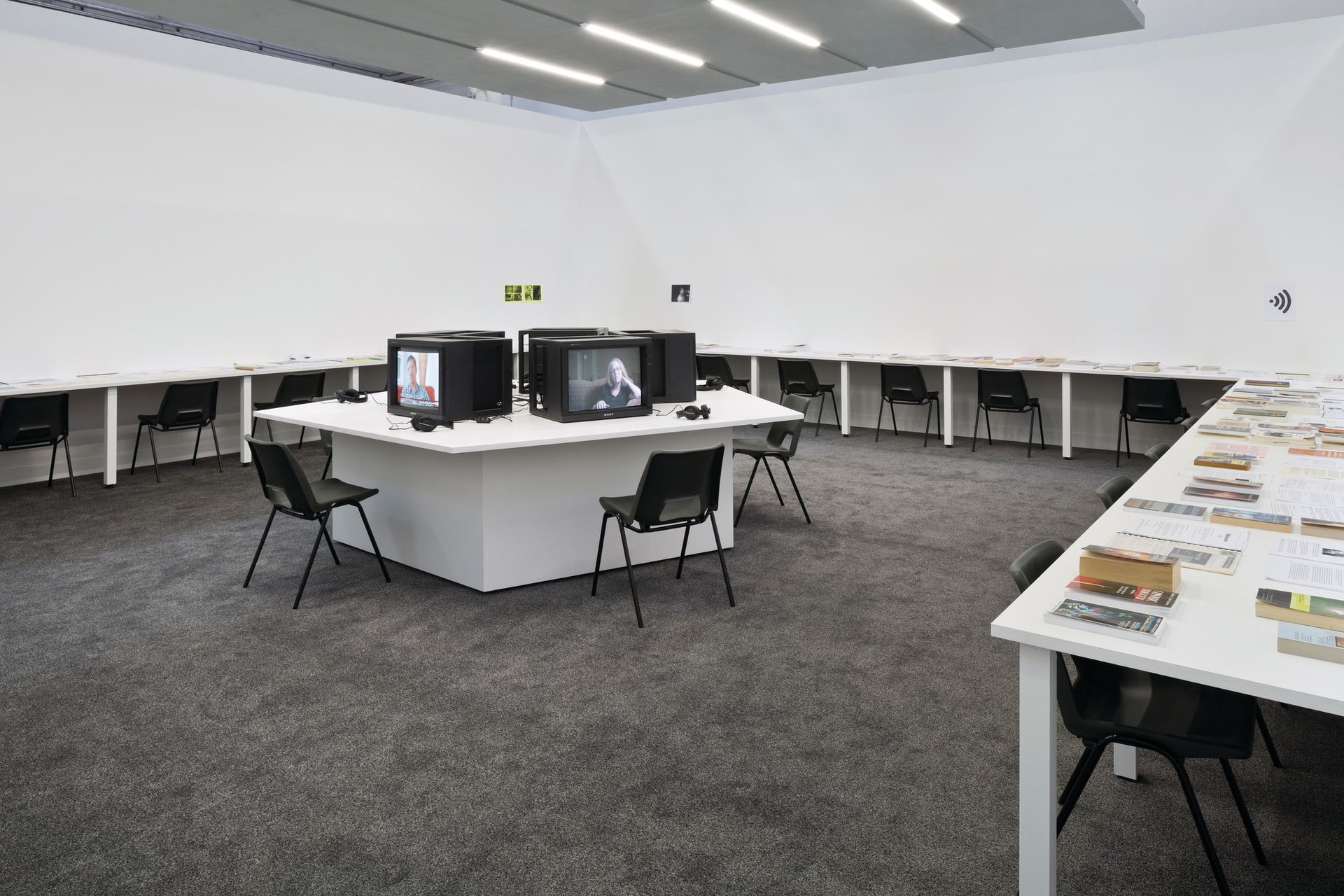 Another multidisciplinary artist is London’s Bonnie Camplin, whose dense study room installation Patterns, previously titled the Military Industrial Complex, will please the critics more than the crowds. Five video interviews and tables laden with books and documents explore supernatural phenomena and alternative philosophies, from alien abduction to witchcraft, ESP to Bruce Lee.