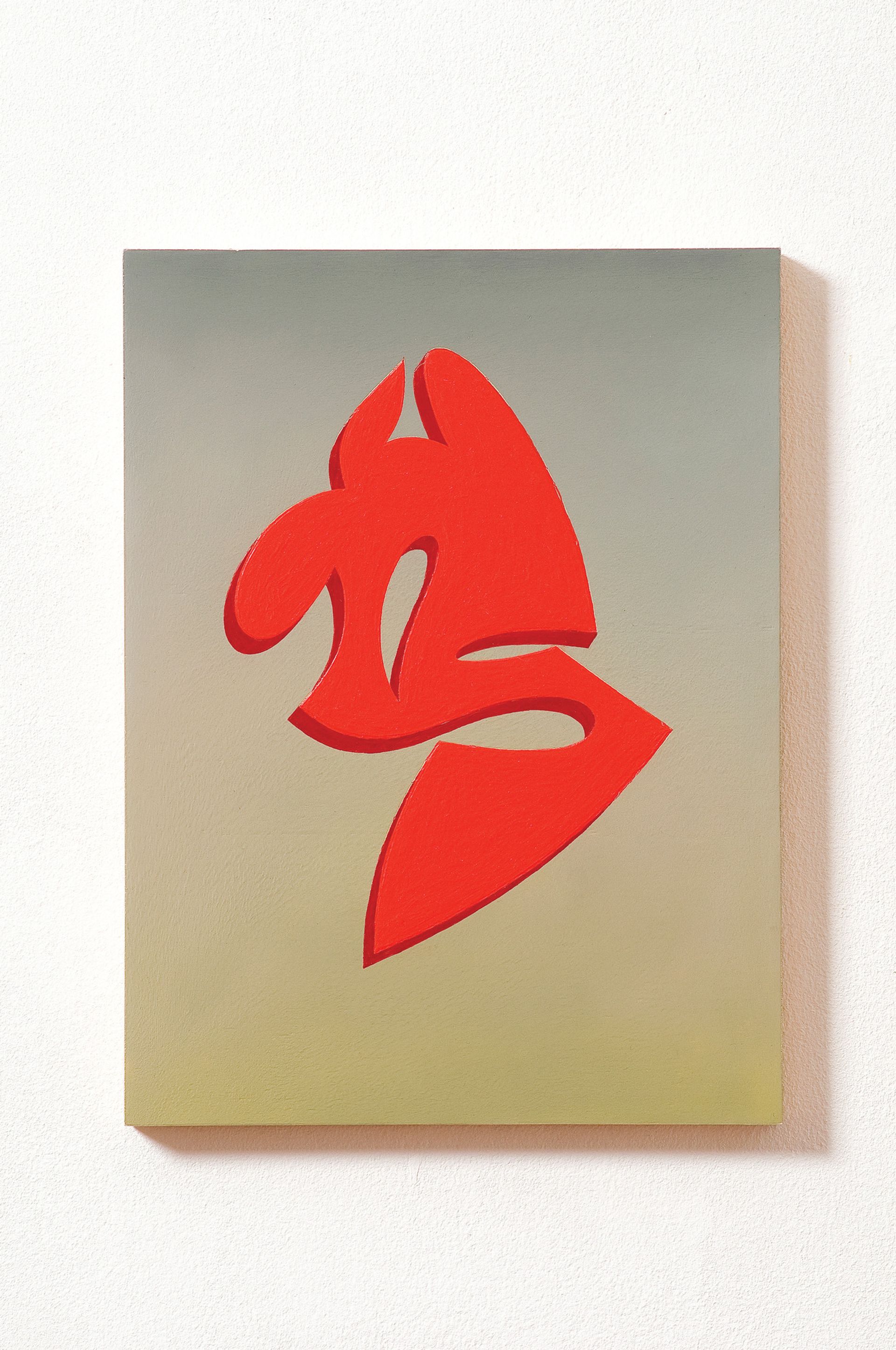 “In 2008, I moved to Rome. Until then, I had pointedly endeavoured to make work in a multitude of different methods and media, sometimes on my own and sometimes in collaboration. I still work in this way, but when I moved to Rome, I saw it as an opportunity to return to my first true love—painting—which I abandoned soon into my time at the Slade. I was able to see painting from a new perspective, and with a more rounded and less hermetic view in relation to art and the world at large. I wanted painting to be a hook on which everything else I do could hang, and so I began a series of small oil paintings, each one 40cm by 30cm, which I am still making today. This painting is from the first group, and it has become a kind of template for some works I am making now, my Mask Paintings and Smiley Paintings, in which a face-like flat form stares at the viewer.”