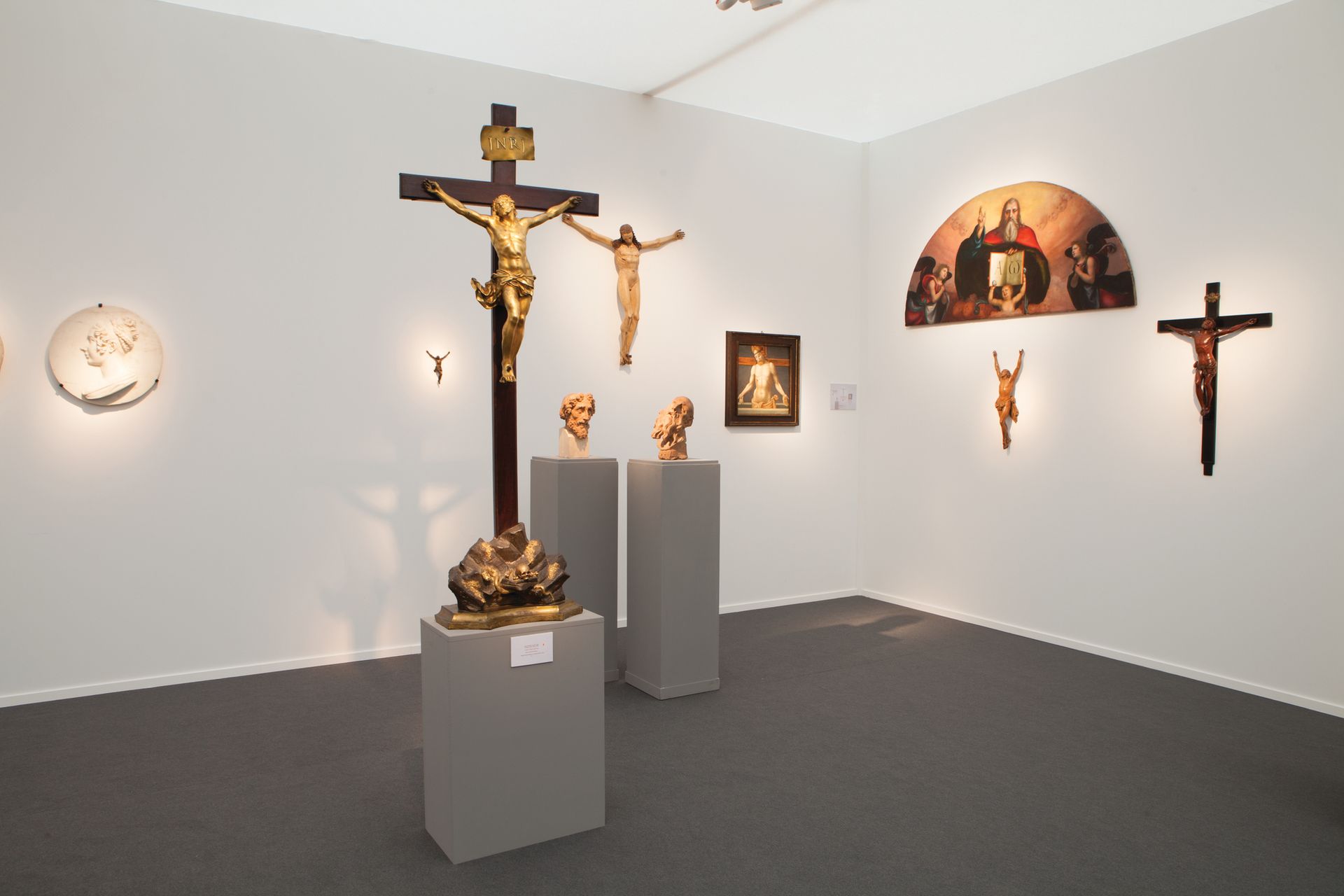 This crucifix-heavy display is not just geared towards Catholics, Bruno Botticelli says. “I don’t think collectors buy art because they believe in idols. Collectors buy figures of human beings,” he says. “Sacrifice is a human concept, not just religious.”