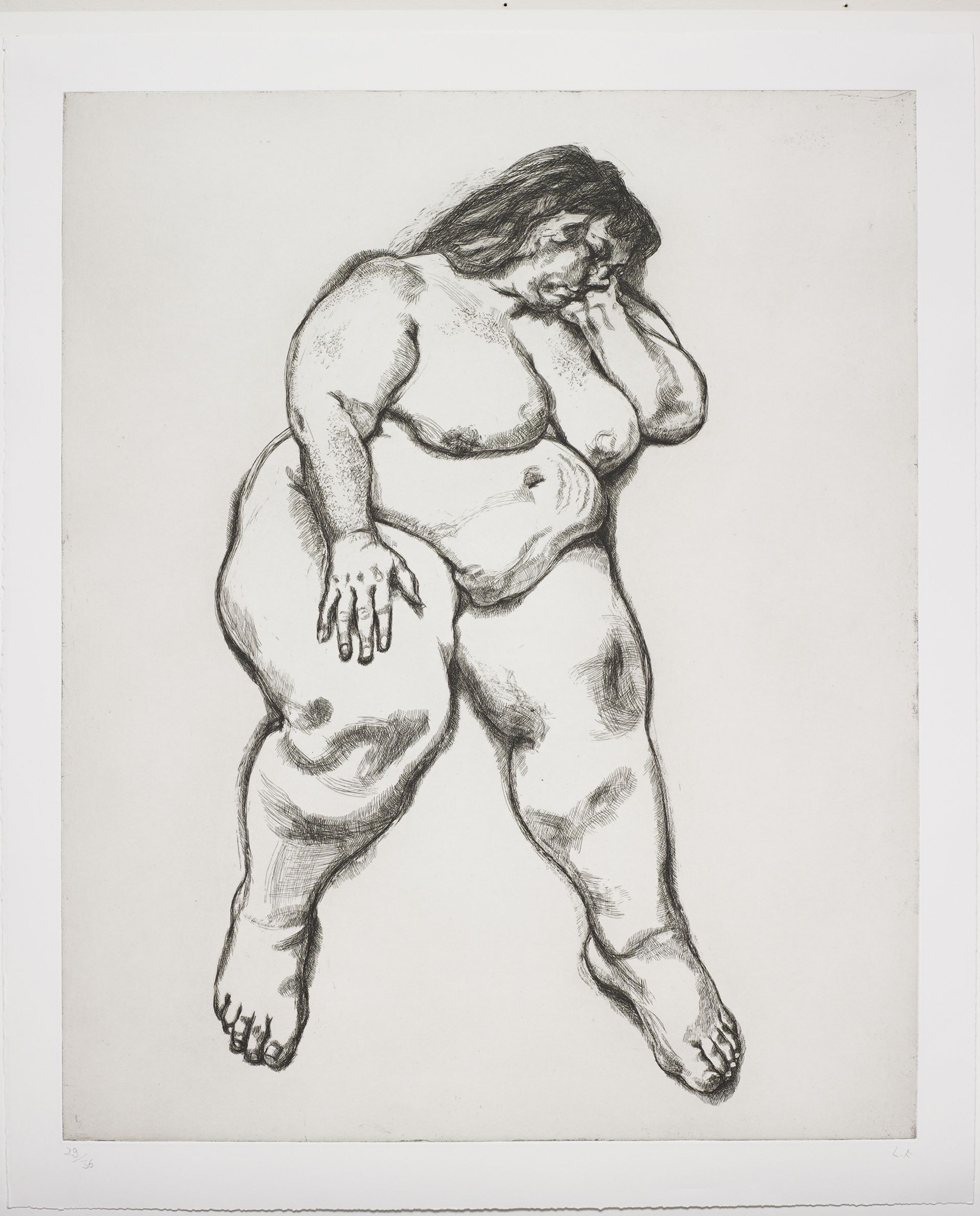 Two etchings by Lucian Freud of his amply proportioned muse, Sue Tilley, sold for more than £100,000 at Phillips London today, 15 October, almost doubling their combined low estimates. One of the works, Woman Sleeping (1995), came about “entirely by accident”, Tilley recounts in the introduction to the catalogue.