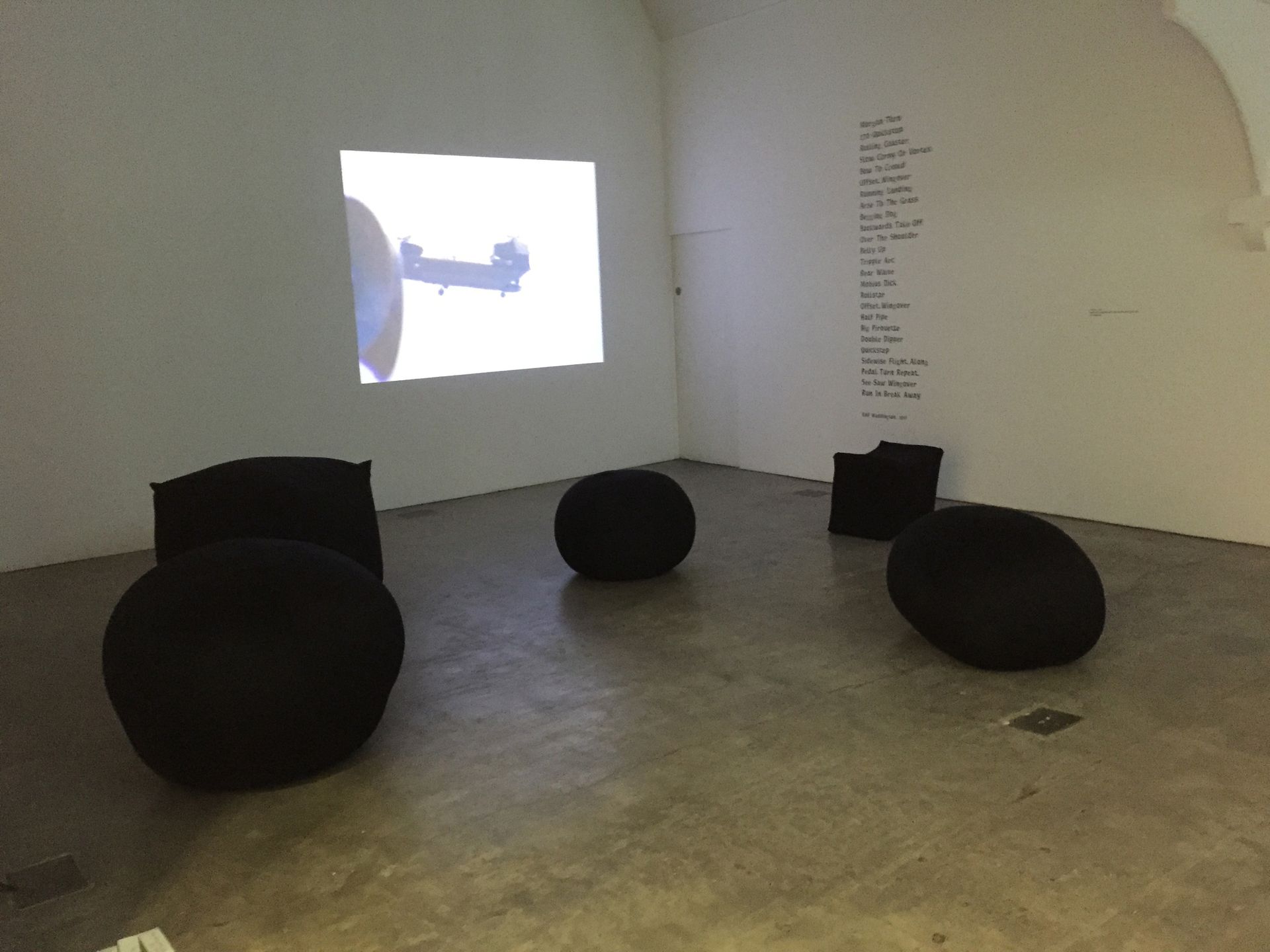 The job of a public gallery attendant is always a varied one, but Fiona Banner’s current (terrific) survey show at Ikon Gallery in Birmingham is offering some novel challenges not only for visitors but also for those in charge of the exhibits. Many of us who have suffered the often gruelling experience of viewing artists’ films either standing up or backside-achingly floor-bound are highly appreciative of the clever—and considerate—wheeze of using soft versions of her giant full stops in various fonts for seating viewers for her two films of canoodling windsocks and aerobatic Chinook helicopters. However, the collective weight of Banner’s appreciative public tends to distort these squashy artistic beanbags, so gallery staff have been instructed to perform some energetic plumping-up at regular intervals to restore them to their correct shape—which prompts something of an impromptu performance piece in its own right.