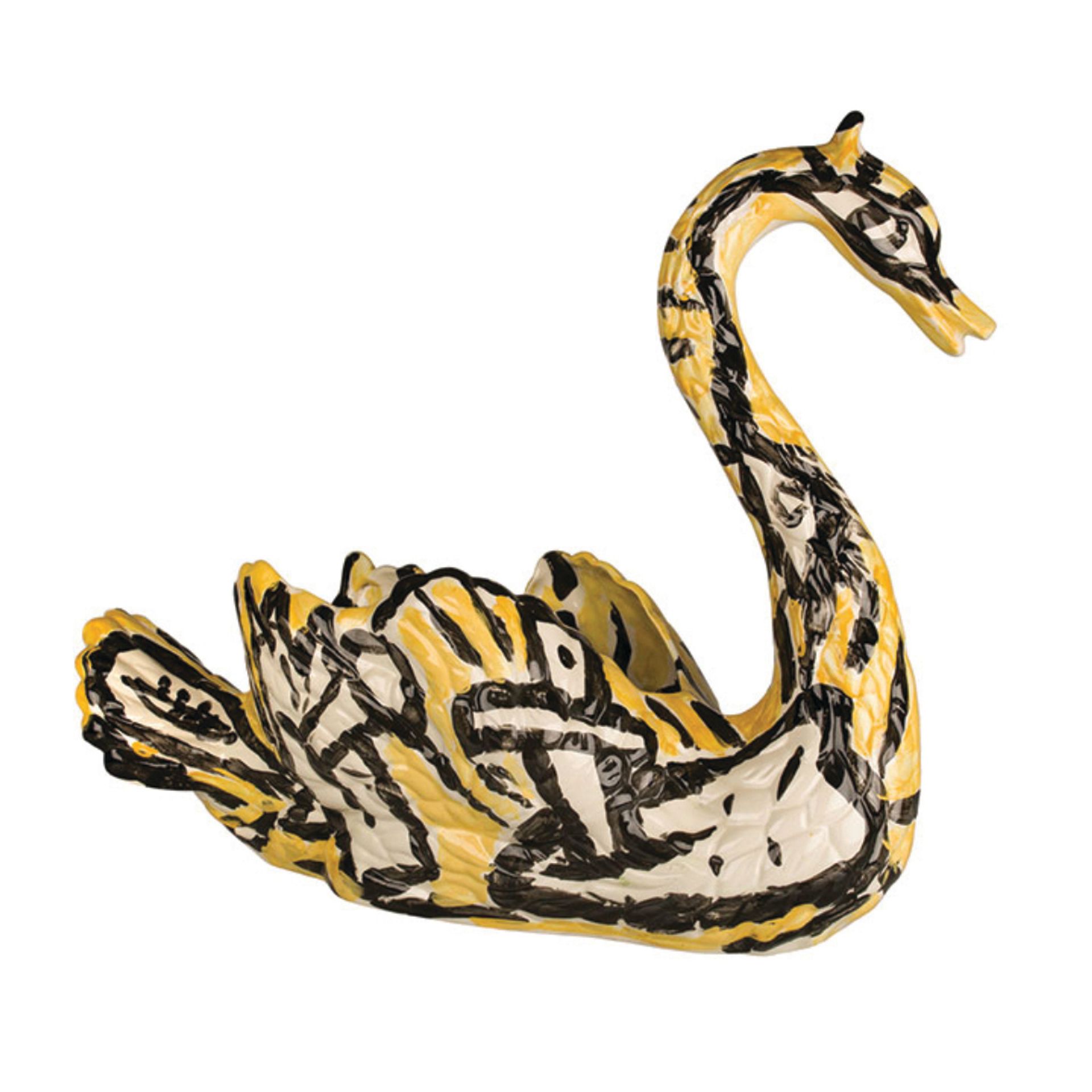 The highlights include studies for two large public art murals in Miami, including the glazed clay mosaic Ceremony of the Tropics (1986), which was commissioned by Miami-Dade Art in Public Places. “Ostensibly a scene of picking fruit, Ceremony is a visual puzzle, the grout so thick between the tiles that its grid must be penetrated, the iconography so sophisticated that it must be revealed,” wrote the art critic Helen Kohen in a review in the Miami Herald at the time. “Those ears of corn are stand-ins for gaping mouths; his watermelons become eyes and a cup is a mask.” The work can still be seen at Miami’s Santa Clara Metrorail Station, in the city’s wholesale fruit district.