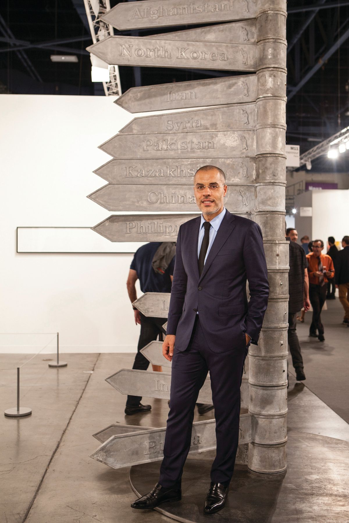 A work on show by the Chinese artist Huang Yong Ping at Mennour’s stand (M11), The Pole of the East (2004), is a political statement. The aluminum signpost directs pedestrians to 17 countries including Russia, Germany and Libya, as well as nations labelled by the former US president George W. Bush in 2002 as the “axis of evil”: Iraq, Iran and North Korea. “I wanted to bring this work because it shows how artists can anticipate world events, even war, and reflect the sensitive situation worldwide,” Mennour says.