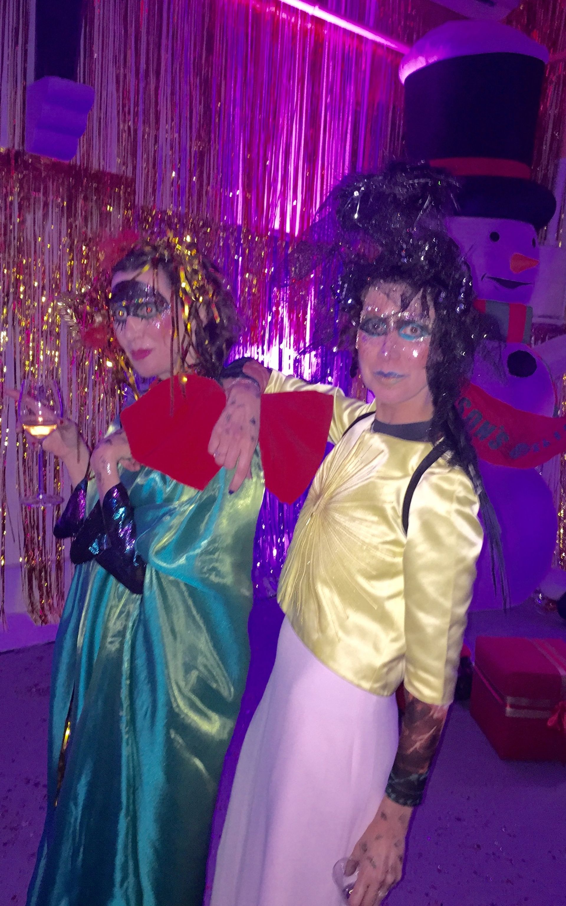 Then there was the crowd of artists, curators, patrons and assorted celebs including artists Jamie Shovlin, Aaron Angell and Julie Verhoeven, Frieze director Victoria Siddall (who is also Studio Voltaire’s chair of trustees) and even U2’s bass guitarist Adam Clayton living up to the dress code of “Jolly Holly Cheer and Glitter Boots” with a vengeance. But although the fabulous hostess-duo were jollity incarnate—rocking a disco elf and angel theme—they chose to defy the festive footwear. Instead they opted for their trademark towering stilettoes, which did nothing to impede their nifty moves on the dance floor. Christmas has now officially begun…
