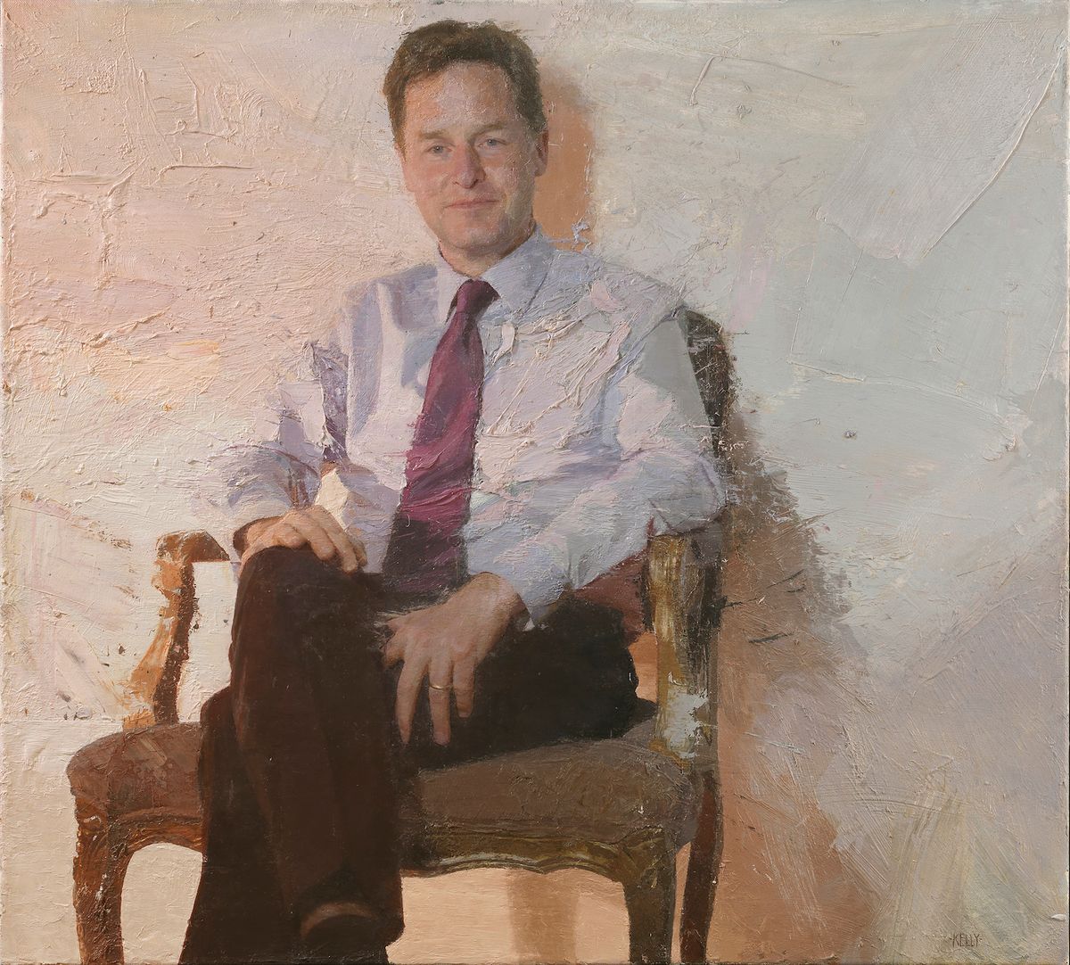 A portrait of the former deputy prime minister and Liberal Democrat leader Nick Clegg has been unveiled in the UK Parliament. Clegg praised the artist, Brendan Kelly, for capturing “such an unnervingly accurate portrayal”. The MP then added: “What was even more unnerving was that that when I first saw it and remarked how pale and tired I looked, my assistant pointed out that he had captured me perfectly.” Clegg served as deputy prime minister in David Cameron’s coalition government, from 2010 until last May. Kelly shows the politician in his studio, emerging from a thick impasto background. Clegg, looking pensive, sports a tie, but no jacket, going for a semi-formal look. The portrait, commissioned for the Parliamentary Art Collection at a cost of £9,000, is now on display in Portcullis House, across the road from the Palace of Westminster.
