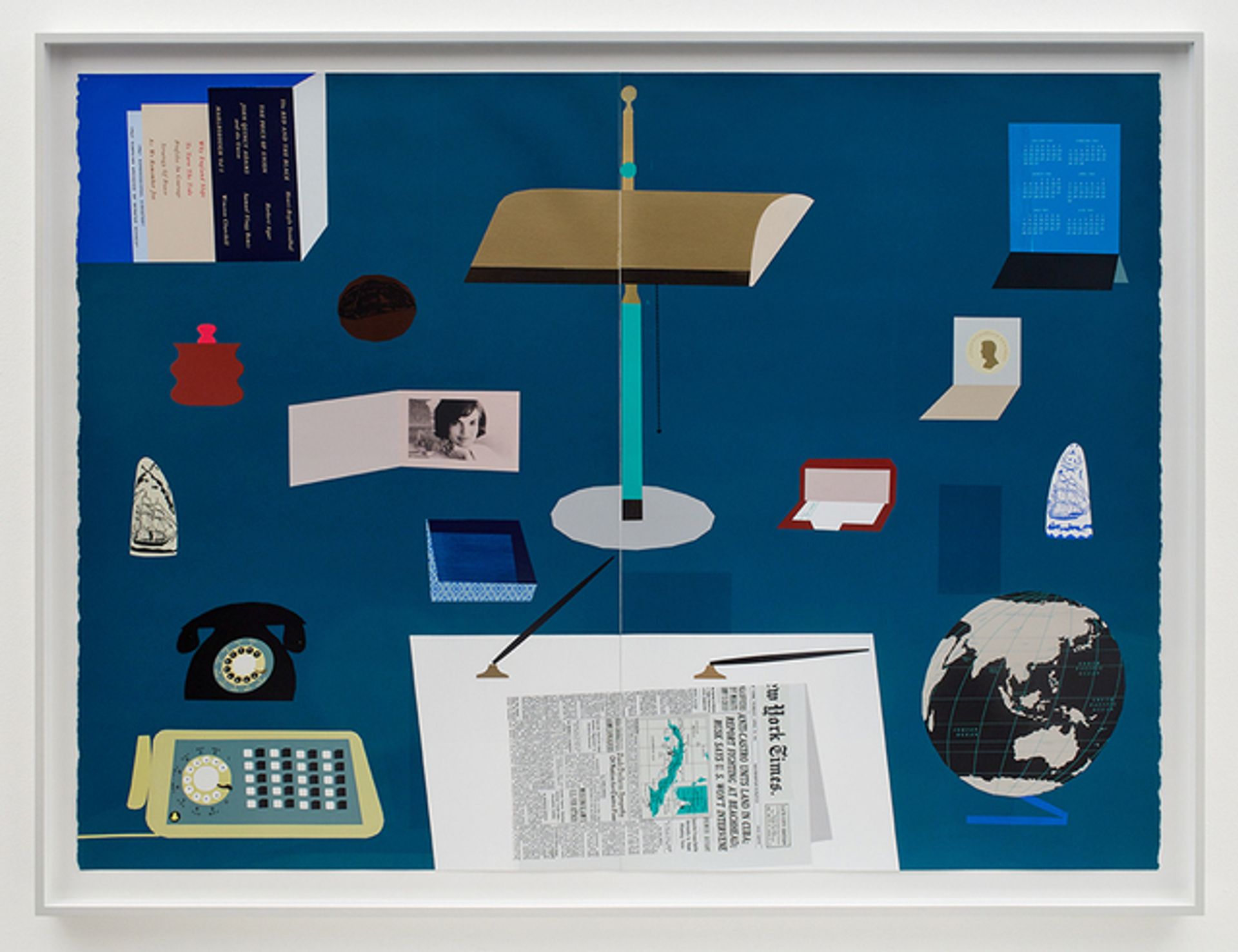 At Kordansky, a new series by Matthew Brannon featuring images of the desktops of presidents—the three he associates with the Vietnam War: Eisenhower, Kennedy and Johnson—drew crowds, due to their powerful graphic appeal and the fun of deciphering the personal and political mementos that decorate each desk. These large works, silkscreens with painting on paper, run up to $38,000.