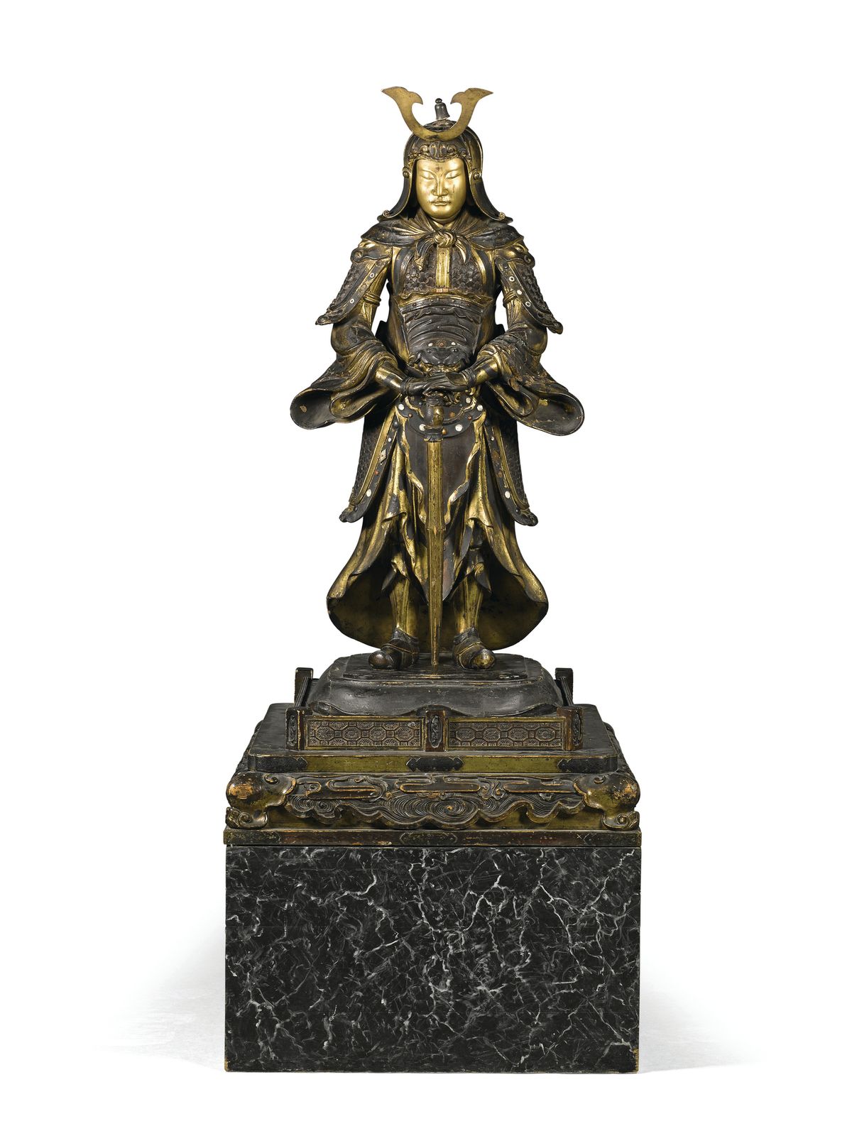 Sotheby’s in London is selling more than 450 decorative objects and family heirlooms from the estate of Deborah, the Duchess of Devonshire, the last of the six aristocratic Mitford sisters. A highlight is this Japanese gilt-decorated lacquer sculpture from the Meiji period (late 19th century), which is estimated to fetch between £20,000 and £30,000. The 2m-tall sculpture is mounted with ivory, glass and metal on a lotus-carved base and depicts a traditional Japanese guardian figure. The duchess’s grandfather, the British diplomat Algernon Freeman-Mitford, who had strong ties to Japan, was probably given the statue by the emperor Meiji in the 1870s. Freeman-Mitford was appointed the third secretary to Japan by the British government in 1866, and became the secretary of the British Legation in 1868. He was honoured at the Japanese imperial court in the same year, and wrote a folkloric novel titled Tales of Old Japan in 1871.