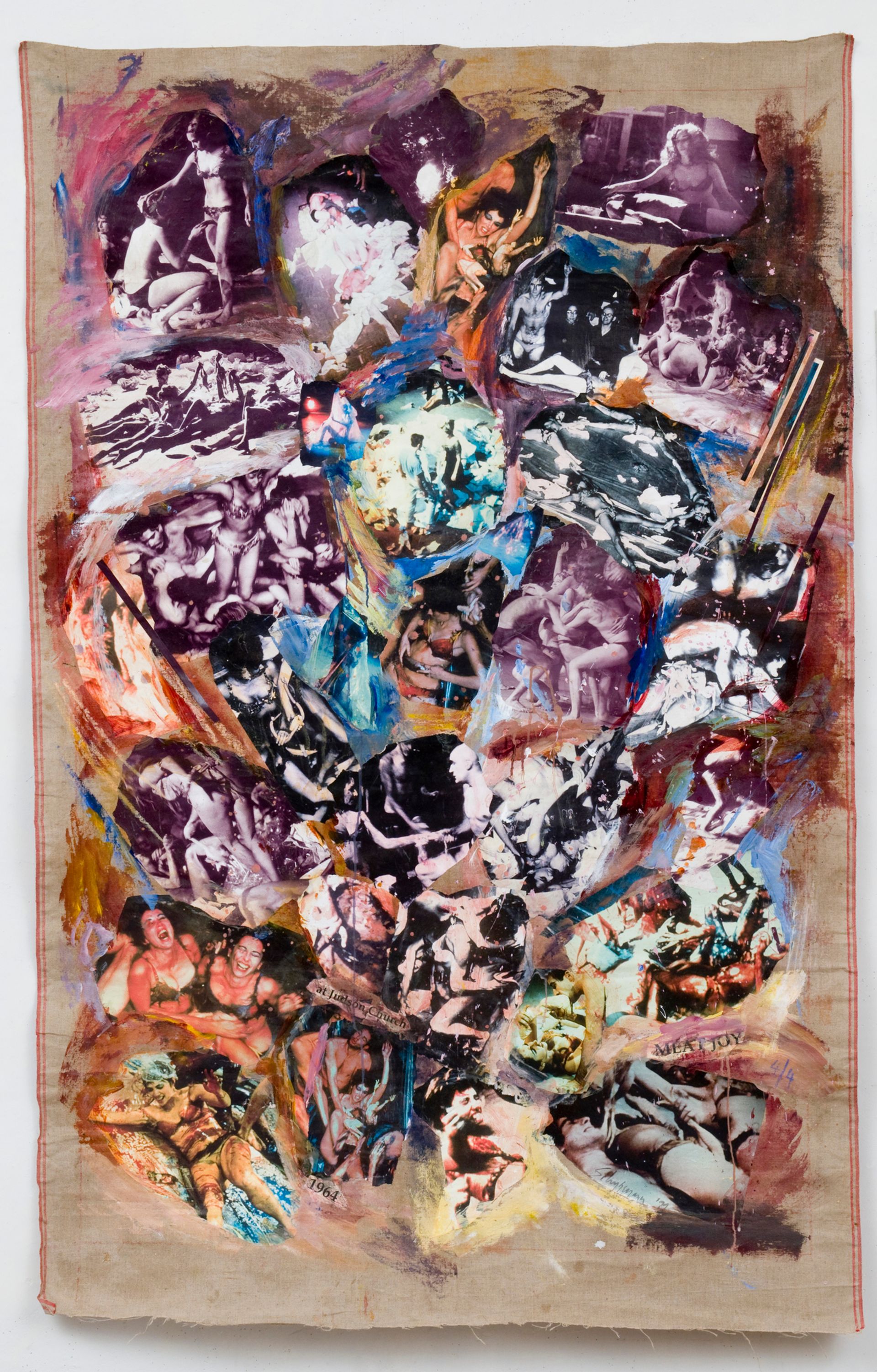 PPOW: Carolee Schneemann, Meat Joy (1999), $100,000 It is difficult to walk by PPOW’s booth, with a solo presentation on Carolee Schneemann, and not notice the centerpiece: Meat Joy (1999), a collage of photographs from the artist’s eponymous 1964 performance at Judson Church in New York. Mounted on canvas with crayon and paint, the work’s chaotic, visceral brushstrokes in vivid colours evoke the spirit of the group performance, which Schneemann has compared with “an erotic rite: excessive, indulgent, a celebration of flesh as material”, making use of such objects as raw fish, chickens, sausages, paint and ropes. —Victoria Stapley-Brown