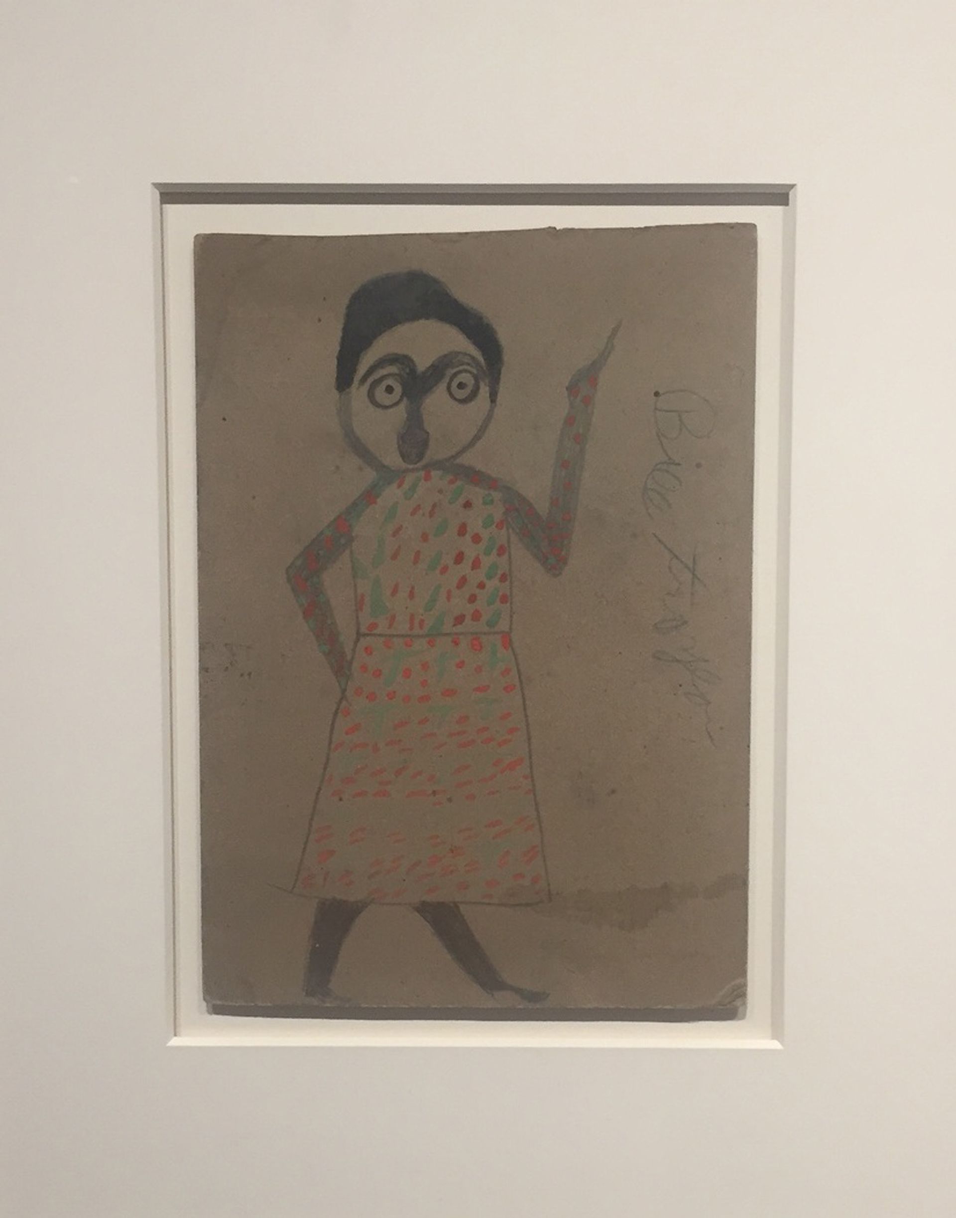 Betty Cunningham Gallery: Bill Traylor, Mexican Lady (1939-42), $125,000 A wonderful display of work by the American self-taught artist Bill Traylor is on the stand of Betty Cunningham Gallery. Traylor, who was born a slave in Alabama in 1854, was discovered by the painter Charles Shannon in front of a blacksmith shop in 1939, where the 85-year-old was drawing with a pencil stub. Shannon encouraged Traylor with art supplies and financial support. He also taught Traylor, who was illiterate, how to draw his name but most of his work remains unsigned. The graphite on cardboard work Mexican Lady (1939-42), priced at $125,000, is one of the few to bear Tralor’s signature and shows the artist practicing his writing with a string of Ts incorporated into the woman’s dress. — Gabriella Angeleti
