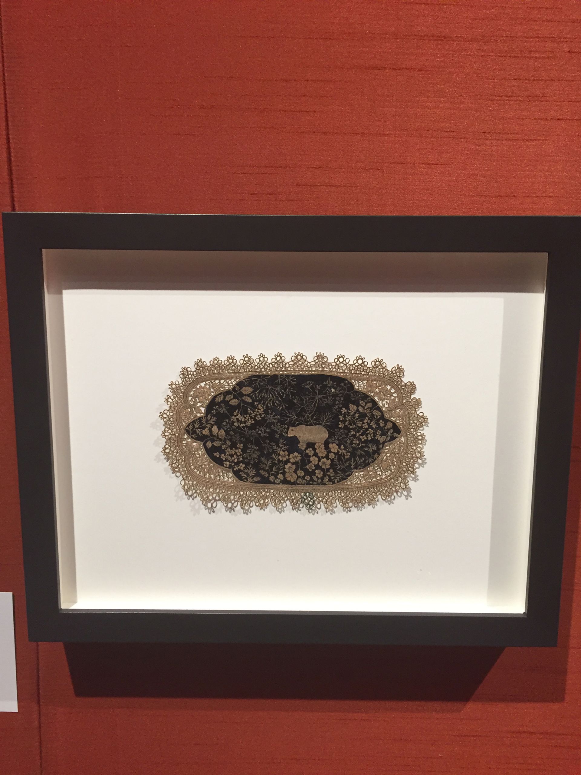 Tucked in the back corner of the fair is a paper menagerie by the New York artist Jasmin Sian, who delicately cuts out brown paper bags into filigree doilies on which she has drawn miniature scenes. As well as the usual urban wildlife like pigeons, or a friend’s pet parakeet named Fennel, Sian has dedicated a piece to one of the city’s best loved and sorely missed former residents: Gus, the Central Park Zoo polar bear, who died in 2013. The San Francisco gallery has been working with the Philippines-born artist for more than 15 years and this latest zoological series is two years in the making. The Dutch designer Marcel Wanders, who has a show on at Friedman Benda gallery in New York, was spotted in the booth admiring the “absolutely beautiful” works. “And I thought cutting bread was hard,” he said. —Helen Stoilas