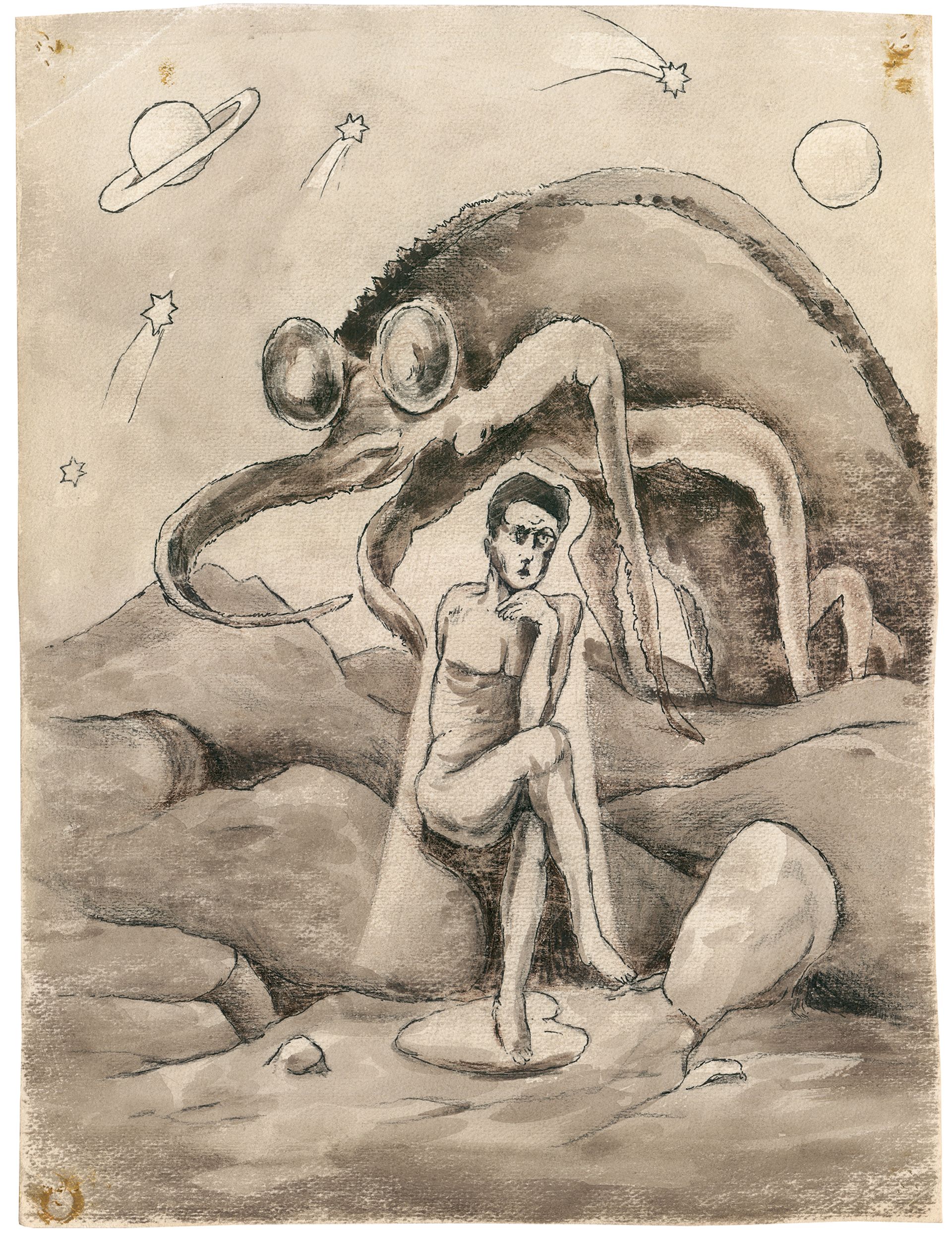 Delmes & Zander (5th Floor, #4) The German gallery Delmes & Zander’s stand at Independent in New York is the first of a two-part show that will continue next month when the fair opens its inaugural edition in Brussels. One/other is a display of self-portraits, many by anonymous artists (the gallery specialises in Outsider and Art Brut), that makes visible their creator’s inner demons and secret fantasies. The science-fiction-tinged paintings from the 1930s, for example, by Michail Paule, a Russian artist who was a patient in a psychiatric hospital, were kept by a Hamburg doctor as visual aids about the experience of depression, or what was then called melancholia. The works cover more than a century of obsessive artistic production, from a series of violent early photo-collages from the 1870s, in which the unknown photographer envisions himself as a sabre-welding executioner, to erotic pencil drawings from the 1990s by a man named William Crawford made on prison letterhead. Prices range from €550 for black-and-white snapshots taken by the anonymous Man on Rooftop proudly modelling women’s bikinis to €18,000 for the historic photo-collages. — Helen Stoilas