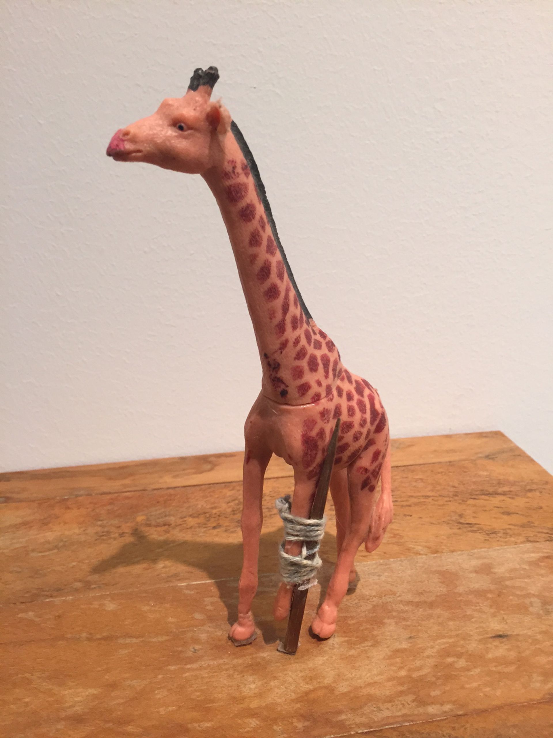 Mendes Wood DM (6th Floor, #13) The São Paulo-based gallery Mendes Wood DM has brought a series of racially charged installations to Independent by the conceptual artist Paulo Nazareth. One piece, titled CA giraffe (2014) and priced at $8,000, shows a rubber toy giraffe with a broken leg, wearing a tiny wooden crutch. Although beguilingly adorable, the installation “uses the image of a safari animal to deal with African diasporas and the supposed function of certain animals and certain humans in the world”, a spokesman for the gallery says, adding that the poetic gesture “repurposes and supports an animal that would otherwise no longer have a purpose for this world”. — Gabriella Angeleti