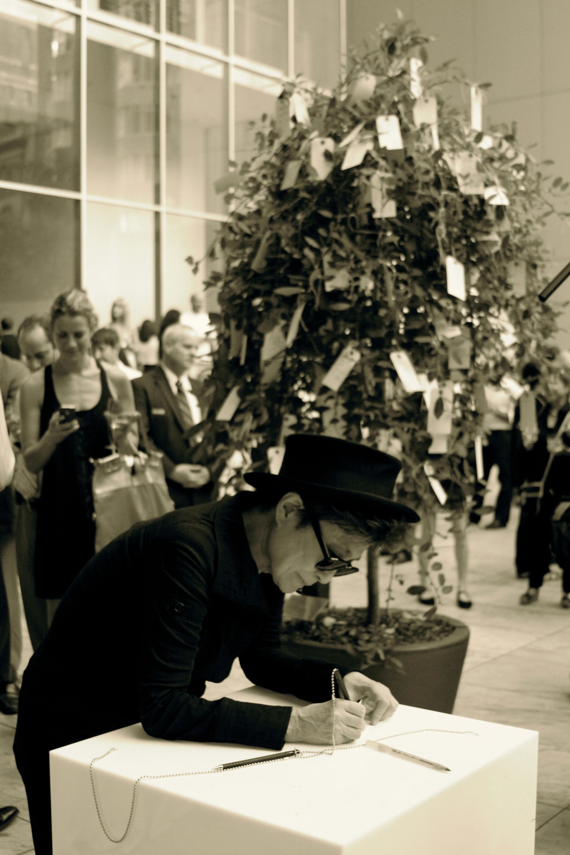 The exhibition also includes the Tokyo-born artist Yoko Ono’s on-going interactive installation Wish Tree (1996 to present). The work invites visitors to tie their written wishes on the branches of an apple tree, which the artist says symbolises hope. When the show closes, the wishes will be buried at the base of Ono’s Imagine Peace Tower on Videy Island in Iceland.