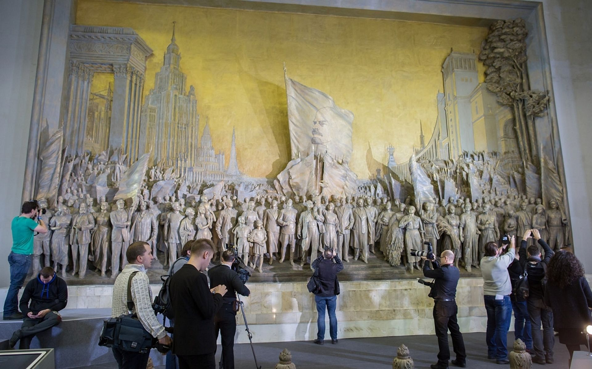 Last week, Moscow’s Mayor Sergei Sobyanin unveiled the restoration of a high-relief mural sculpture from the 1950s that had been hidden for decades behind a wall of the Central Pavilion. Titled Glory to the Soviet People—the Standard Bearer of Peace, the work is by one of the Soviet Union’s most famous monumental sculptors. “Yevgeny Vuchetich’s works are part of the golden pool of our nation’s art,” Sobyanin said at the event.