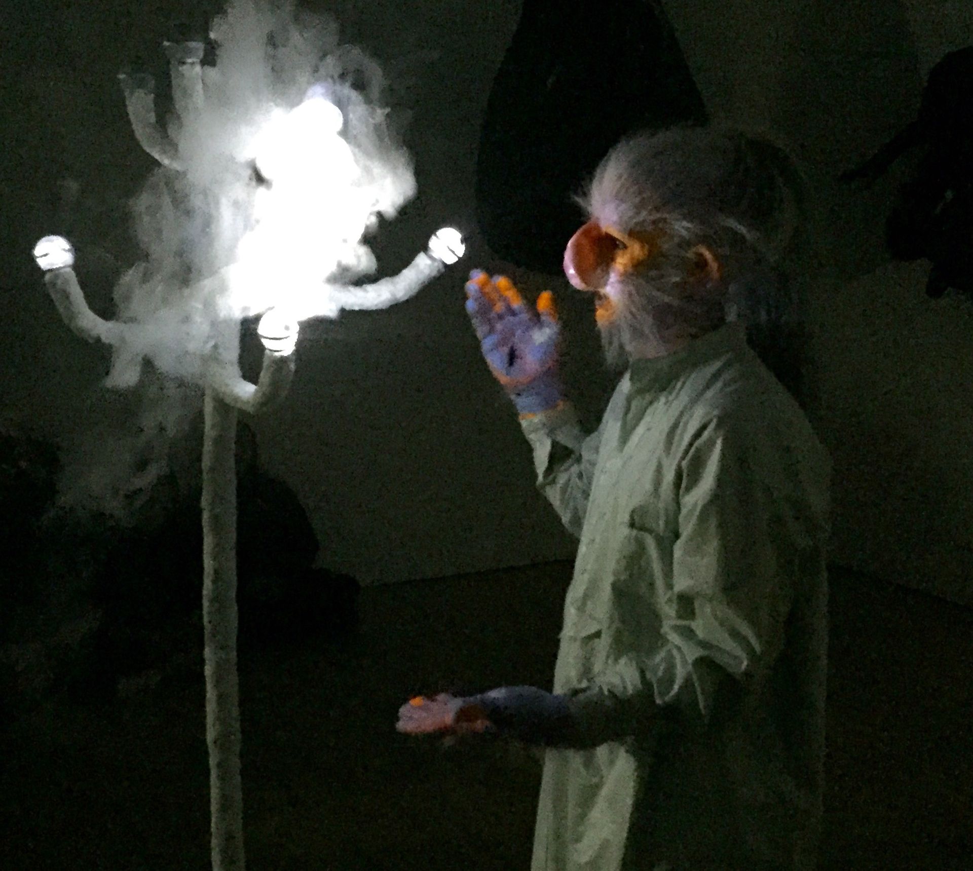 For the one-off live piece at the opening of the Freedman show, Wrånes mutated into an ancient, grey-bearded, troll-like persona, who emerged from the gloom of the darkened gallery to make strangely melodic squealing, growling and groaning sounds into a multi-headed microphone that not only lit up at the end of each of its six branches but also belched smoke.
