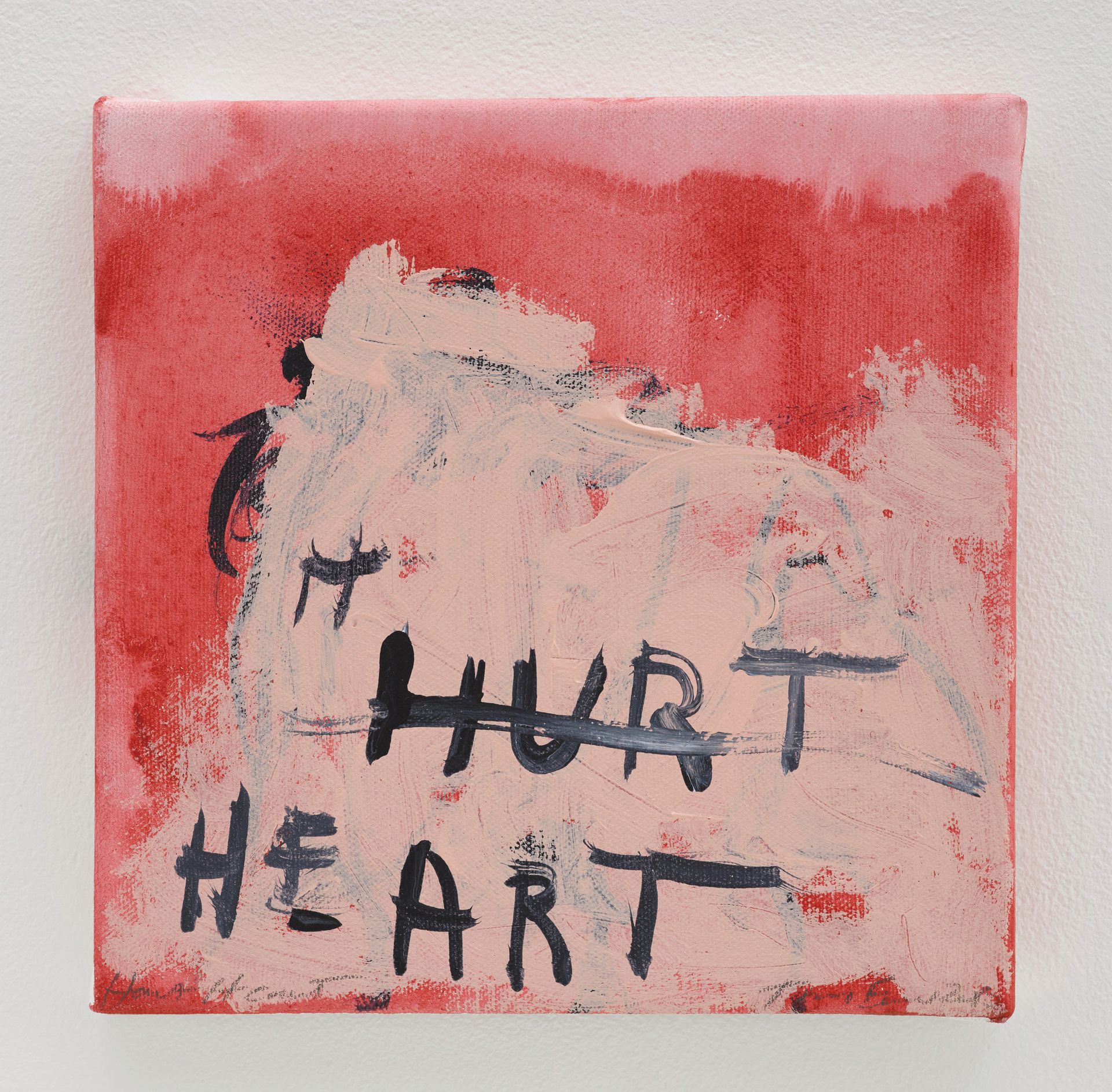 No, they do not—they are the same, just done in a different medium. Hurt Heart may have, at one time, been a neon or a patch or a grand statement on a blanket. Another Love Story is my storyboard of love. I have been working on that painting for five years. I still don’t know if it’s finished, but I like the way it looks. If only love could be so simple.