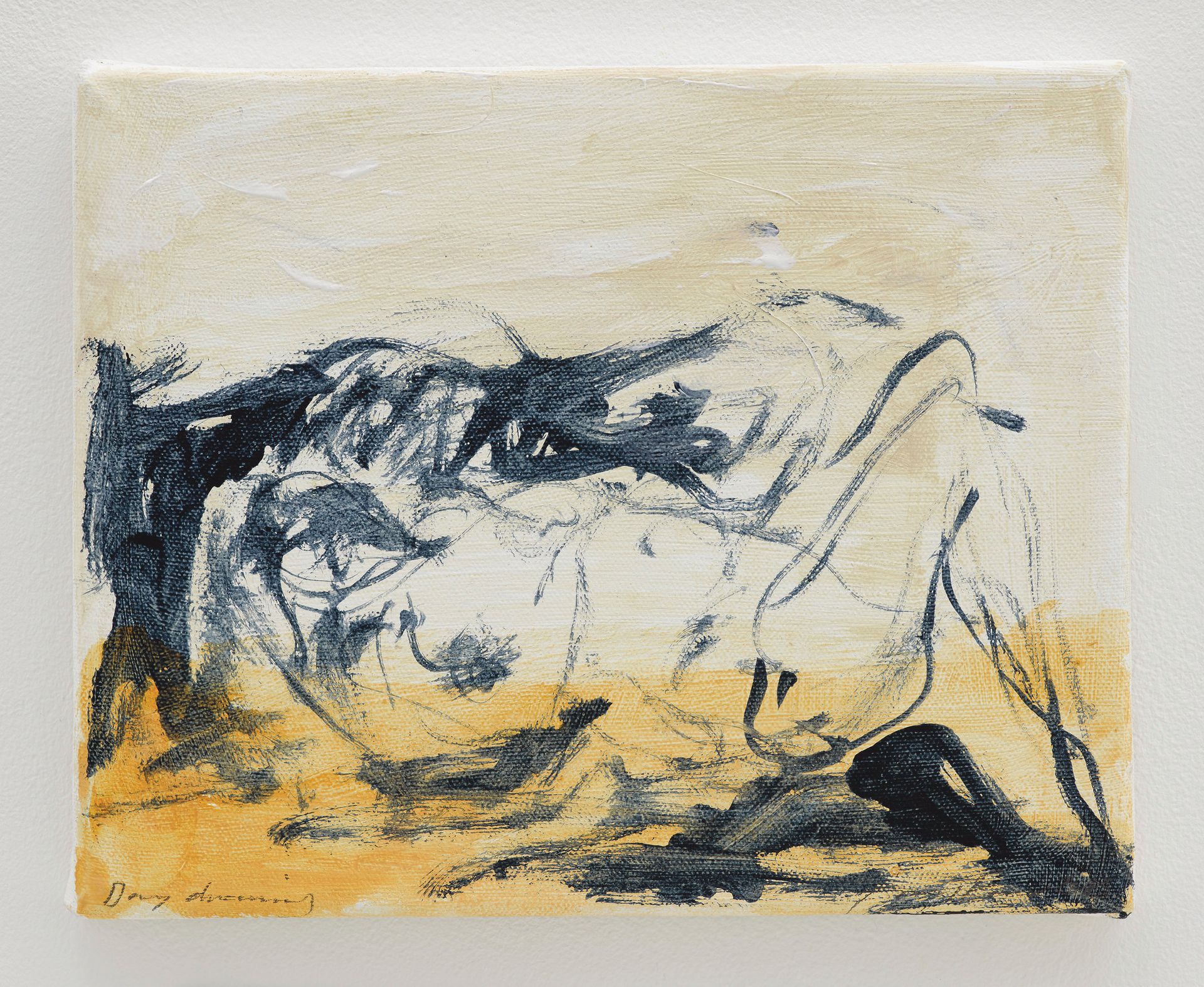 Sometimes a painting can take between seven and ten years to finish. They are all about painting layers and the layering of paint. There are other paintings that start with a very neat primed canvas and I make a large painted drawing on it. There is not really a line where one ends and the other begins, and I treat most of my gouaches and watercolours as drawings, even though they are not.