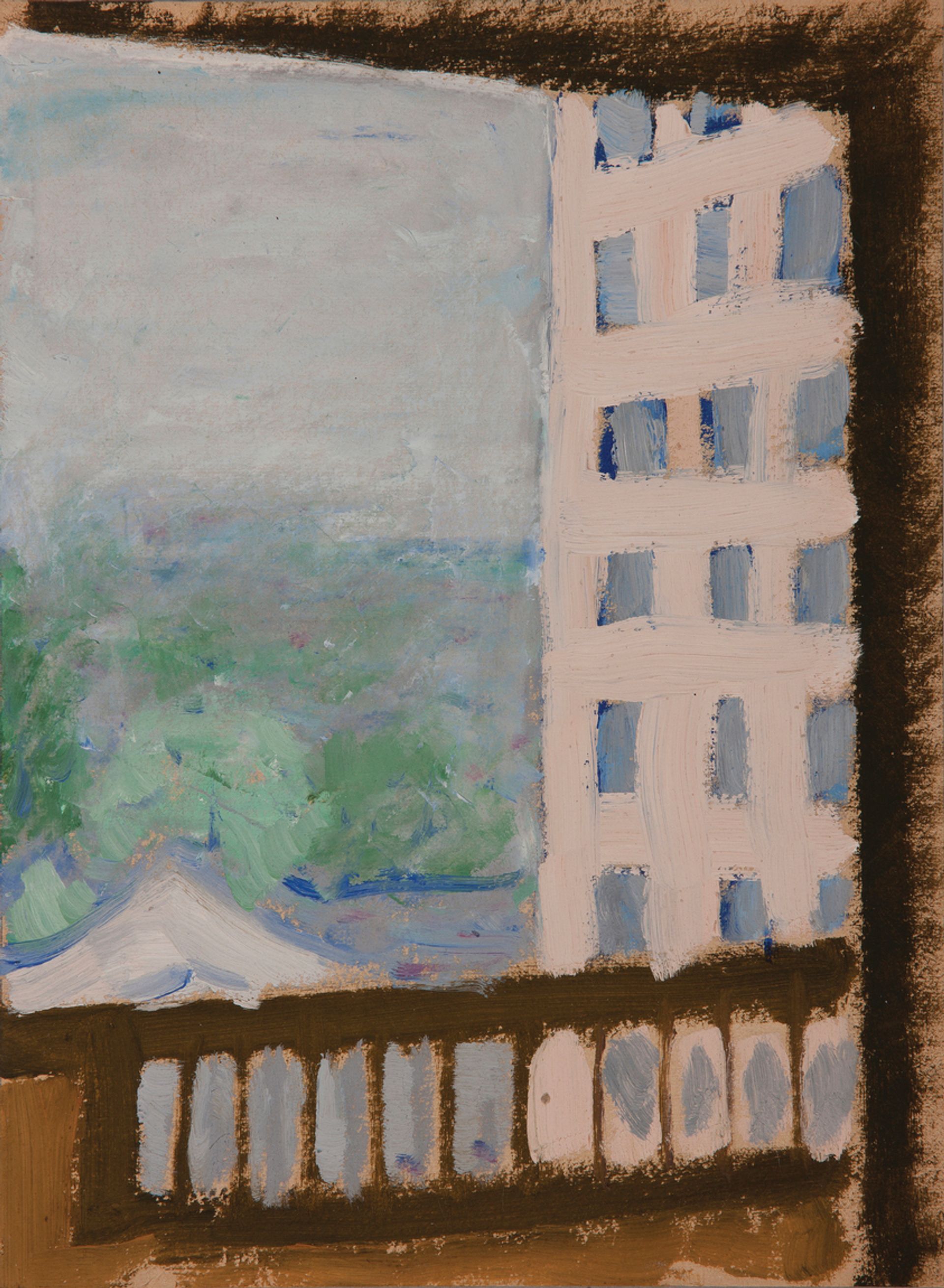 This small landscape documents the scene outside the window of Zhang Wei’s apartment in central Beijing, where the pioneering No Name Group’s first exhibition took place in 1979. The perspective suggests that the artist was looking from a dark interior on to an open street outside, alluding to the underground status of the collective during that period. Zhang’s early works from the 1970s reflect the lack of artistic freedom during the Cultural Revolution, when art was mainly made for propaganda and political purposes.
