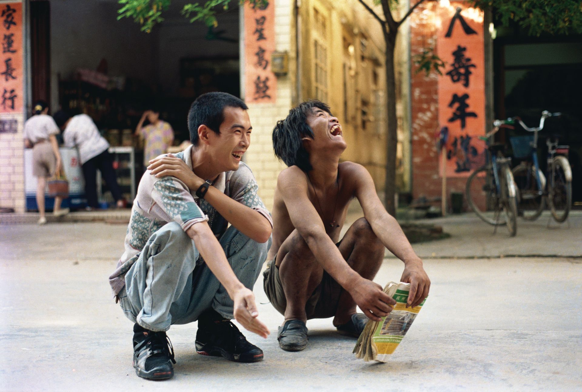 In this photograph, Zheng Guogu and a dishevelled, homeless young man are shown laughing while squatting on the street. It is part of a project in which the artist befriended the mentally unstable man in his hometown, Yangjiang. After following him for a period of time, the artist came to regard the marginalised man as a teacher. Geng Jianyi The Second Situation 1987 In these portraits, which resemble a series of photographic images taken in slow motion, Geng Jianyi analyses human expression by breaking down the act of laughing into four stages. His technical approach reflects a rational re-examination of the passions of the 85 New Wave. Geng co-founded the Pond Society in 1986, and co-organised the 85 New Space exhibition with Zhang Peili.