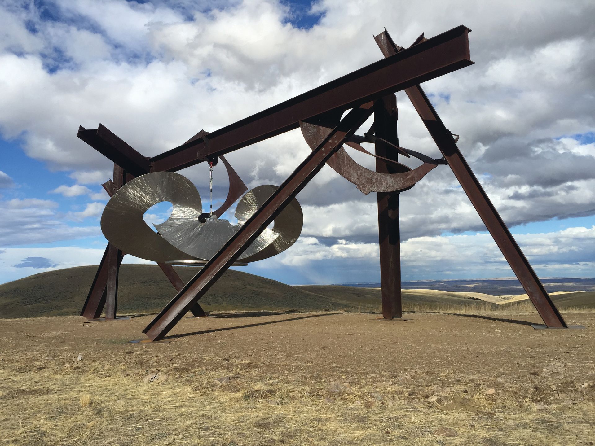 The works in situ include Di Suvero’s Beethoven’s Quartet, 2003, a steel sculpture that visitors can strike with a rubber mallet to produce varying sounds. It was bought from the artist by the owners of Tippet Rise, and had previously been on loan to Storm King Art Center in New York. When the artist travelled to the park to supervise the piece’s installation, he proposed that the centre also install Proverb, 2002, a 60-foot tall sculpture with a metronome-like pendulum that formerly stood behind the Meyerson Symphony Center in Dallas, Texas. It was dismantled last year when the space was sold to developers. Now it stands at the bottom of the park’s Box Canyon, a popular spot for sheep and cattle in summer.