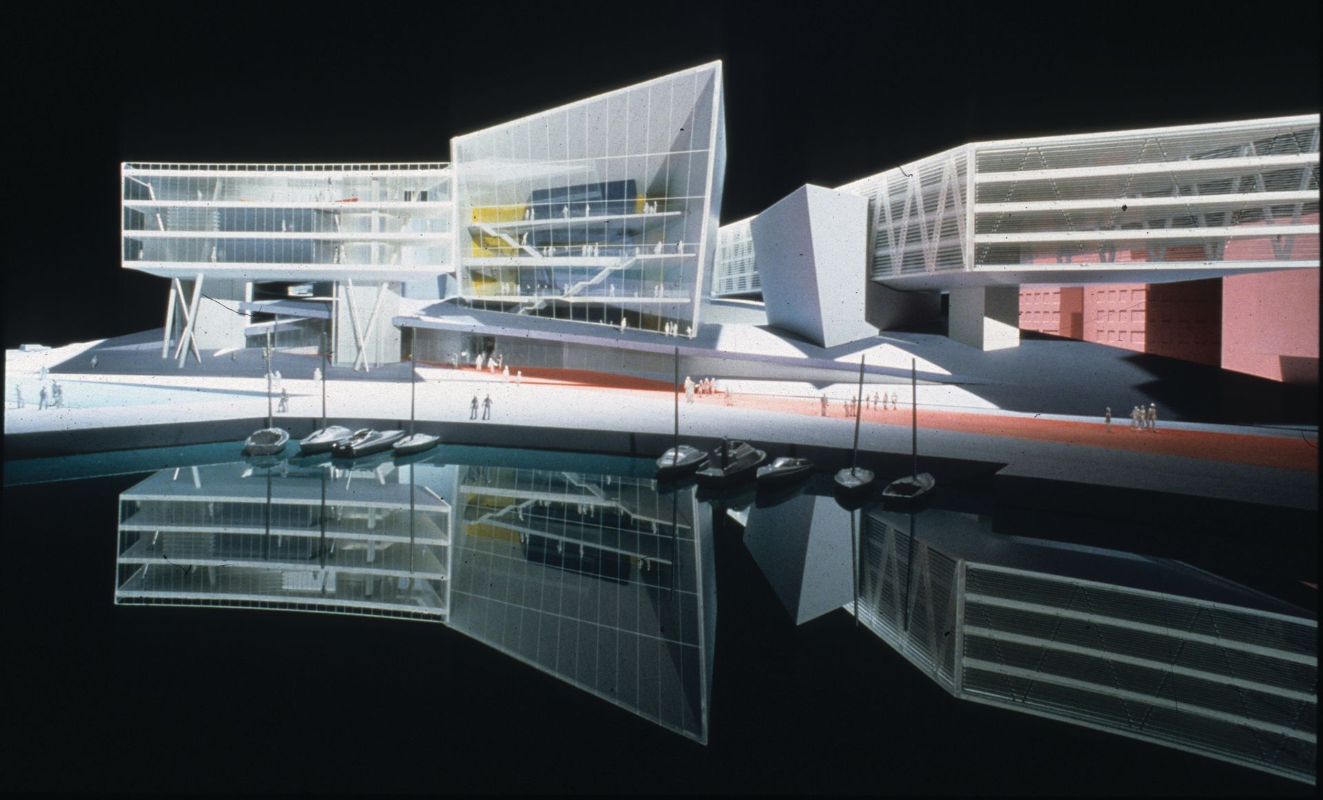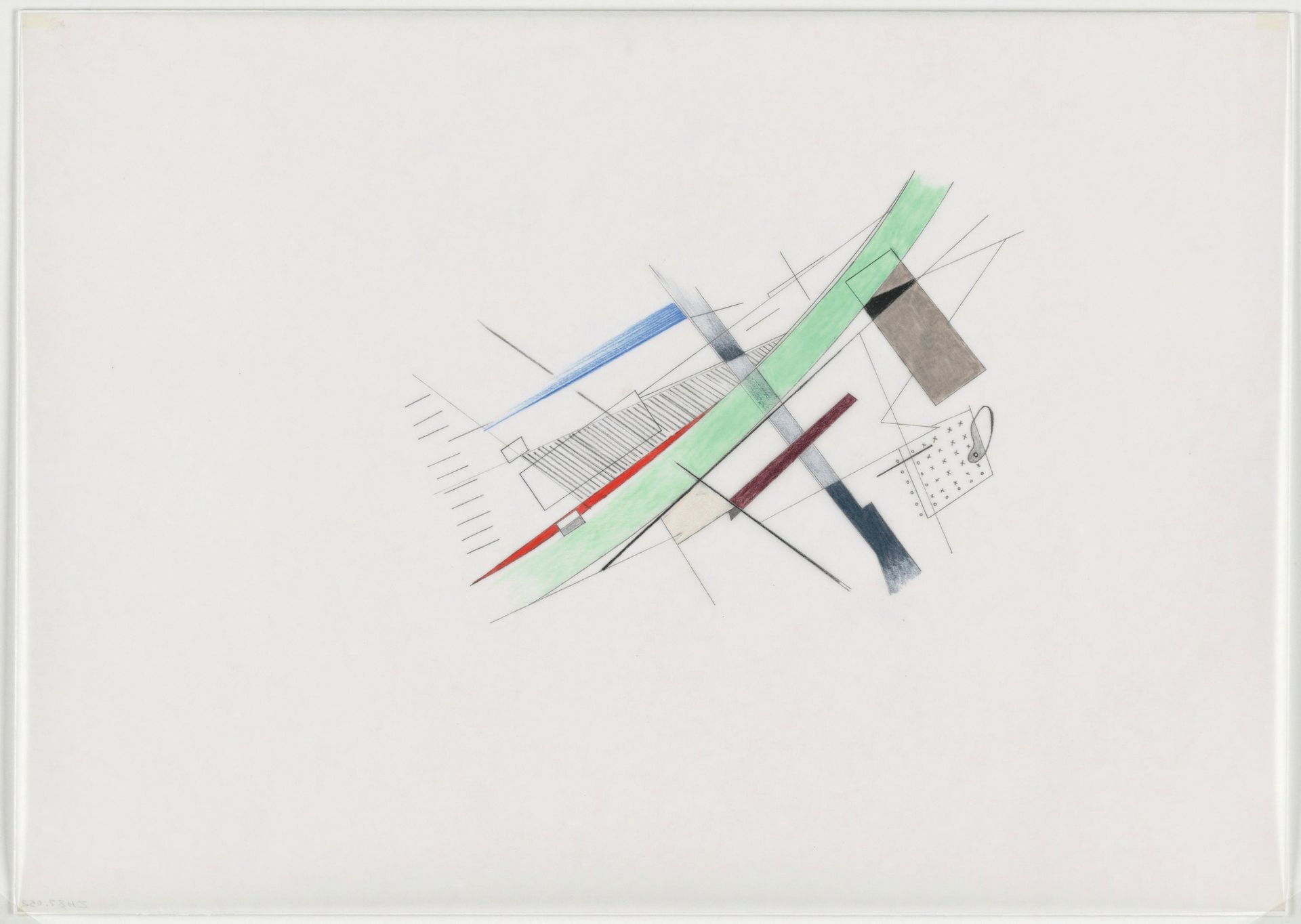 Hadid lost out to Bernard Tschumi in the competition to turn a Parisian abattoir into a park and cultural venue, but her submission drawings are now in the collection of New York’s Museum of Modern Art. The shard sketches demonstrate Hadid’s fascination with early Modernist Russian art and depict stacked, uninterrupted planes that entwine with the landscape to form mobile gardens and structures.