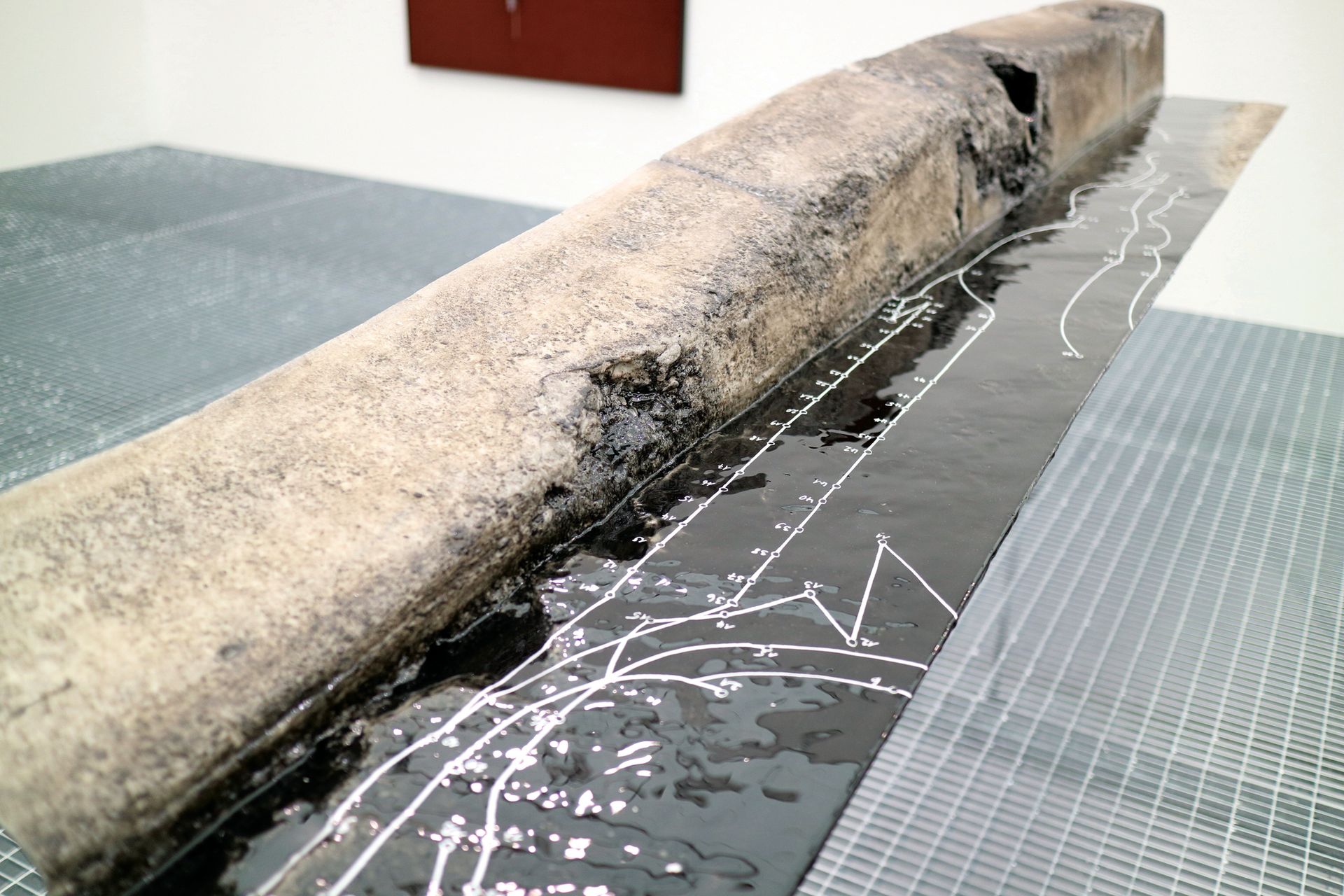 “It’s a great installation that is site-specific. He has these fibreglass sculptures cast from street drains, so it is a trace image,” Schöneich says of Los Angeles-based artist Cooper Jacoby’s new series Stagnants (2016). On the guttering, there are markings based on acupuncturists’ charts of the body. The traditional Chinese therapy is all about unblocking the “sewer system of the body”, the artist says. The pieces are strikingly installed on a raised floor, Schöneich says, as if elevated from below the city street.