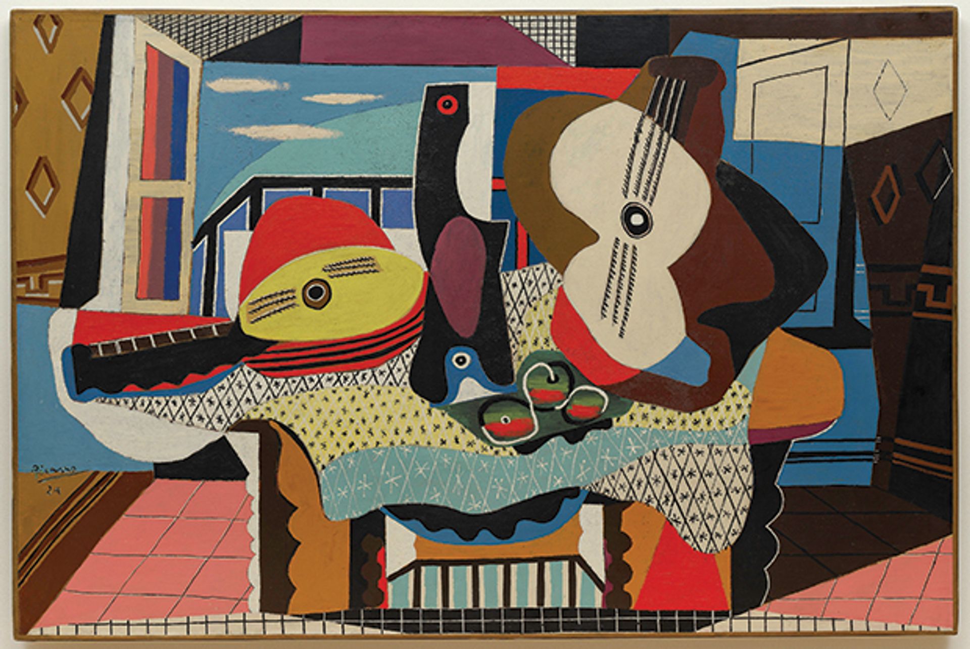 The final section, dedicated to Surrealism and abstraction between the wars, opens with Picasso’s Mandolin and Guitar (1924), a joyfully-patterned still life giving on to a balcony and blue skies. The remarkable distance Picasso travelled from the first picture to this one speaks to the creative energy of an individual rather than a school. This is a painter in holiday mode on the French Riviera—away from Paris’s artistic community and seemingly dwelling little on the world beyond the studio.