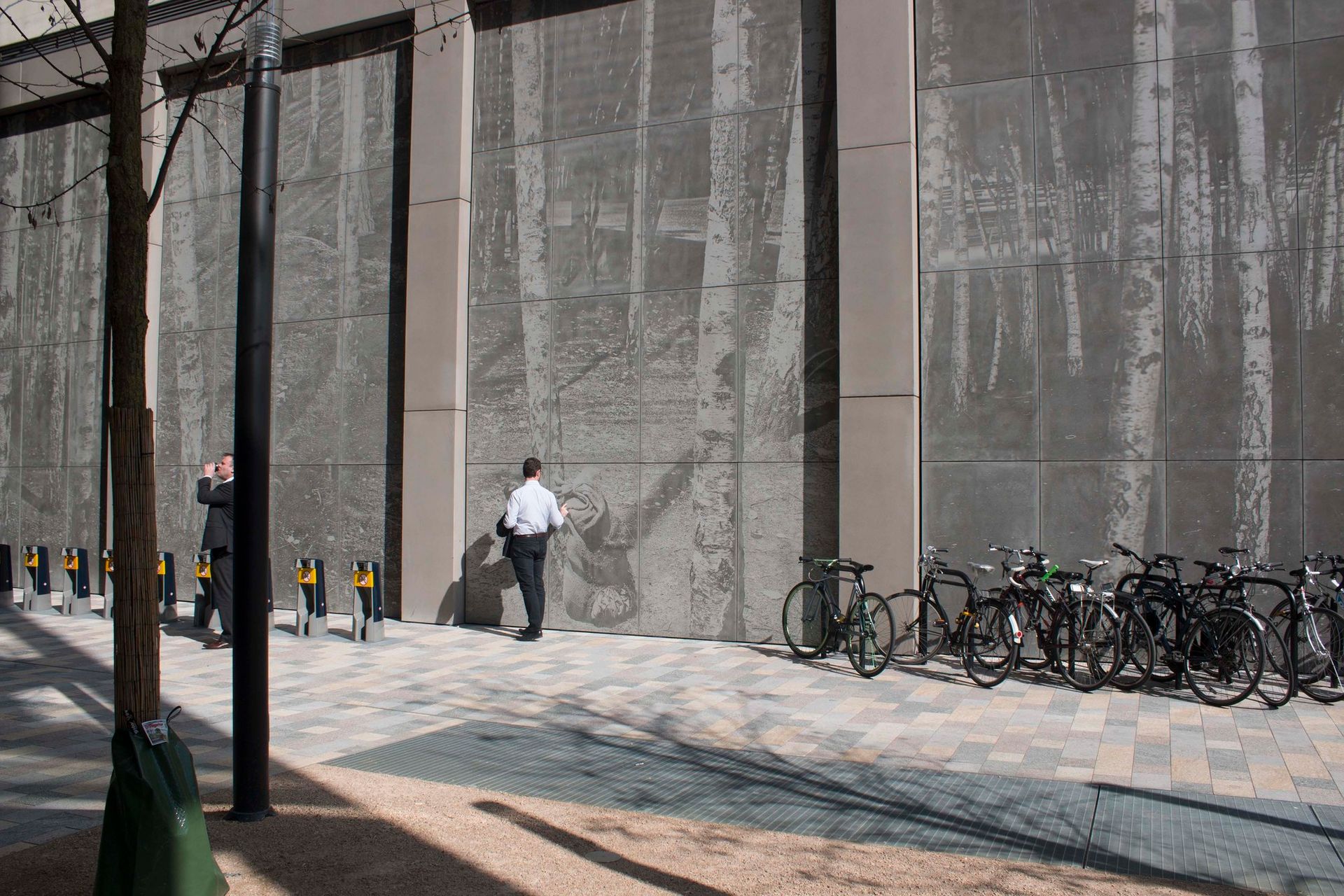 Further afield, near Victoria train station, is a new permanent installation on the side of Westminster City Hall by the photographer, and reader in urban aesthetics at the Royal College of Art, Rut Blees Luxemburg. The wall relief made of six panels, and measuring almost 30 metres in total, is “a concrete photograph, a new technological process, whereby a photograph is rendered in concrete”, Luxemburg says. The images are of silver birch “forests” in “dense urban cities” such as London or Hong Kong, which have a “graphic beauty that is still very visible, maybe even enhanced, by the dust of the city”, Luxemburg says.
