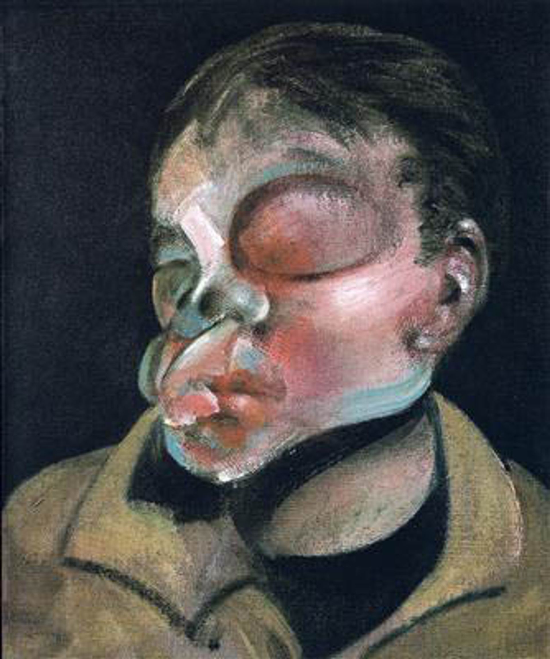 The sadomasochistic side of Bacon’s life emerges in Self-portrait with Injured Eye (1972). According to Harrison’s entry, “Bacon reputedly suffered many beatings, which as a masochist he may not have found entirely uncongenial”. The injured eye in his painting stands as “an autobiographical symbol”. At the catalogue launch, Harrison said that when it came to George Dyer, a long-term companion, Bacon “wanted to be raped by Dyer, whereas Dyer wanted to cuddle Bacon”.