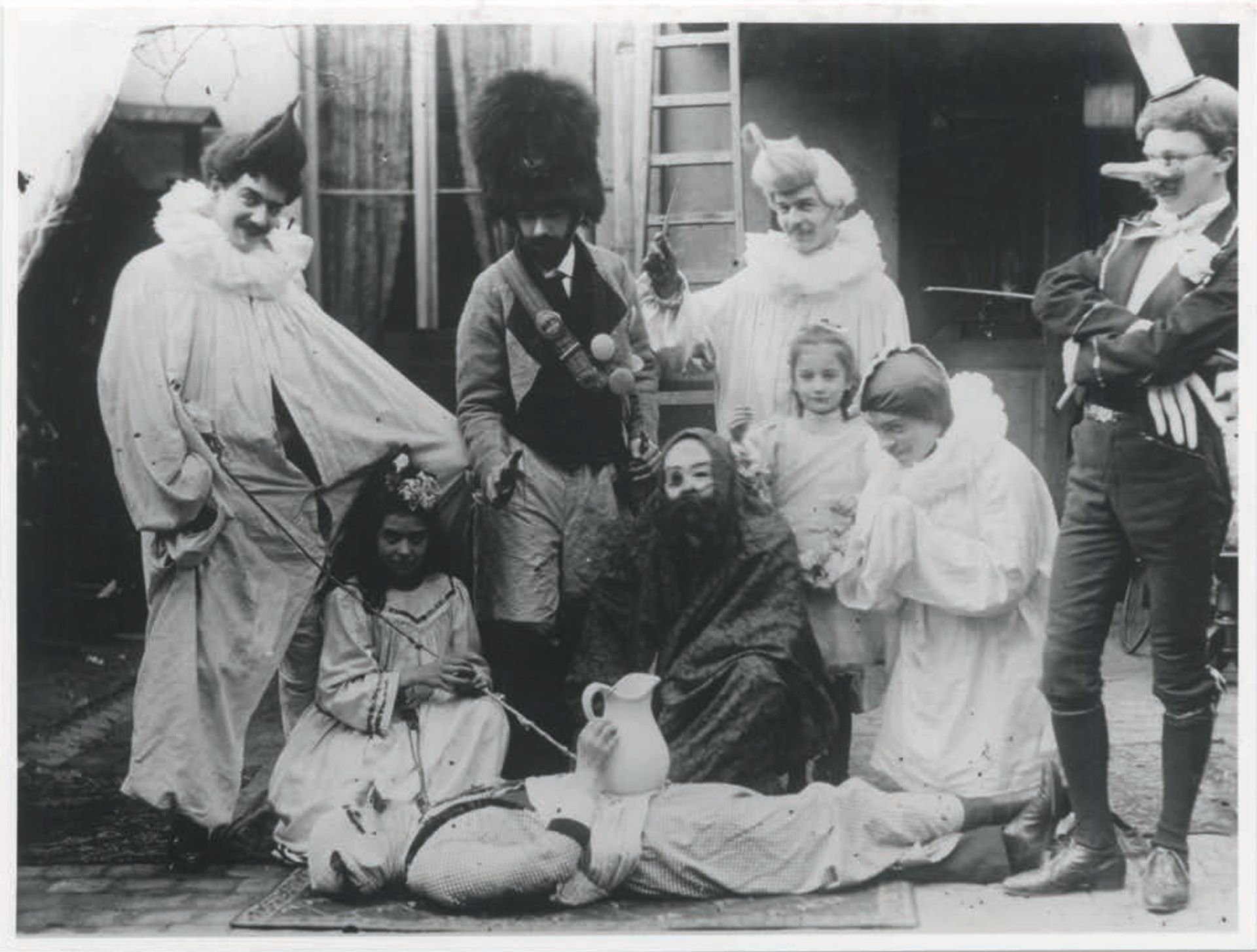 Ensor appears in the painting wearing a hussar busby; other protagonists include members of the Nahrath family and Ernest Rousseau fils.
