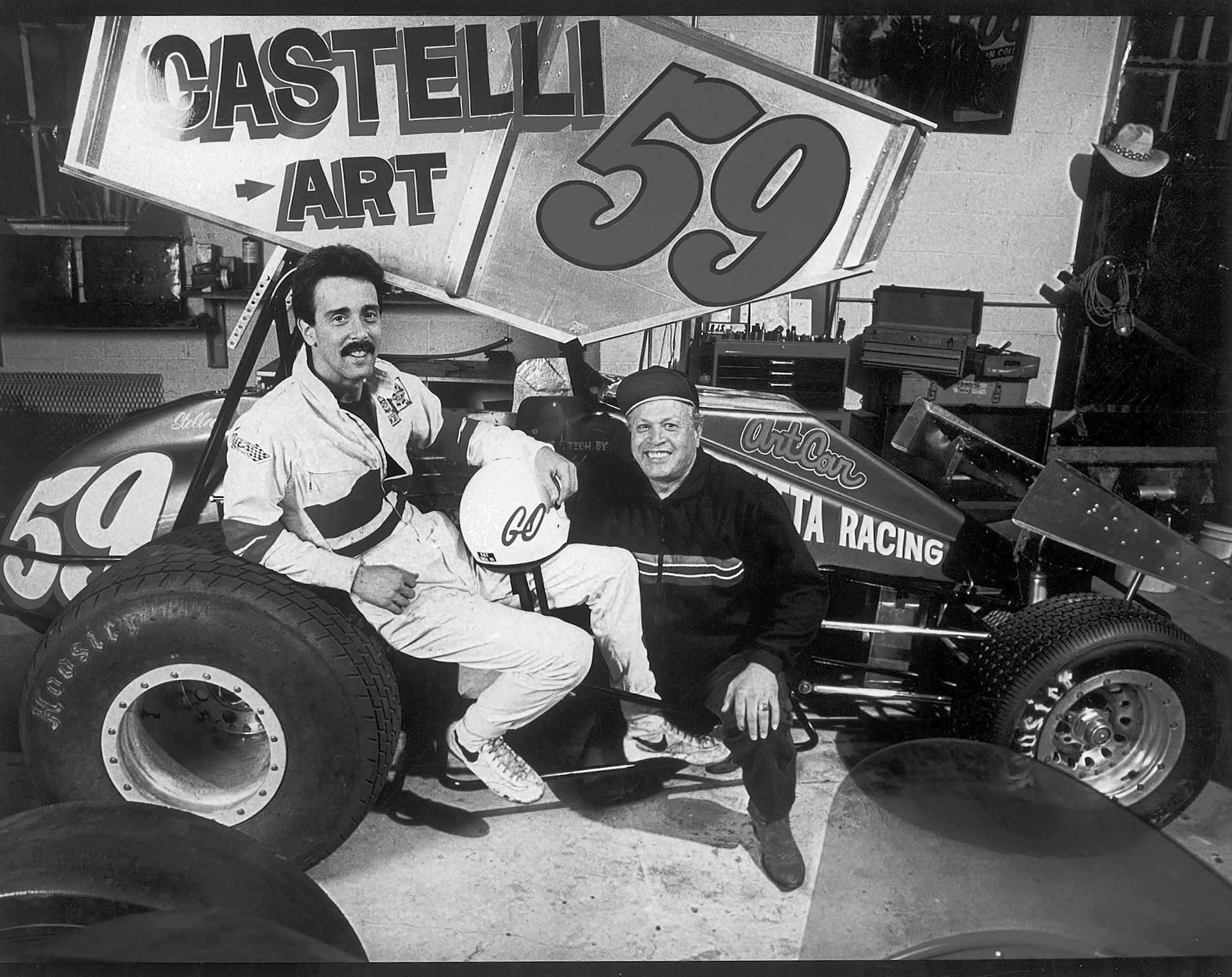 Between 1959 and 1992, Scarpitta had ten solo shows at New York’s prestigious Leo Castelli Gallery. The Sal Ardun Special (1964-83) was exhibited there twice, in 1965 and 1969. The gallery went on to become the official sponsor of Scarpitta’s racing team, and its name was painted onto the side of the cars. A radical move at the time, Scarpitta took art and the gallery outside of the usually insular art world. For Scarpitta, the race was a performance. “I don’t know if it’s art,” he once said, “it’s art if other people continue to look at it.” The Sal Ardun Special never took part in any races, but it served as the team’s coat of arms and lucky mascot, with Scarpitta taking it to every race.
